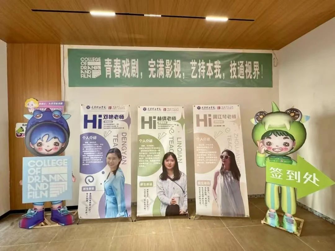 肩负的不只是沉甸甸的行囊,更是满载的梦想、对未来的憧憬以及难以割舍的情愫。然而,这一切都将化作新篇章的序曲,随着我们踏入大学的门槛,迈入人生的新阶段,正式在戏剧影视的殿堂里赴约。从这一刻起,故事翻开了绚烂的一页——心跳因激动而加速,笑容因期待而灿烂,每一次快门声定格的不仅是瞬间,更是梦想启航的永恒印记。一张张打卡合影,也将成为戏娃们最珍贵的记忆!