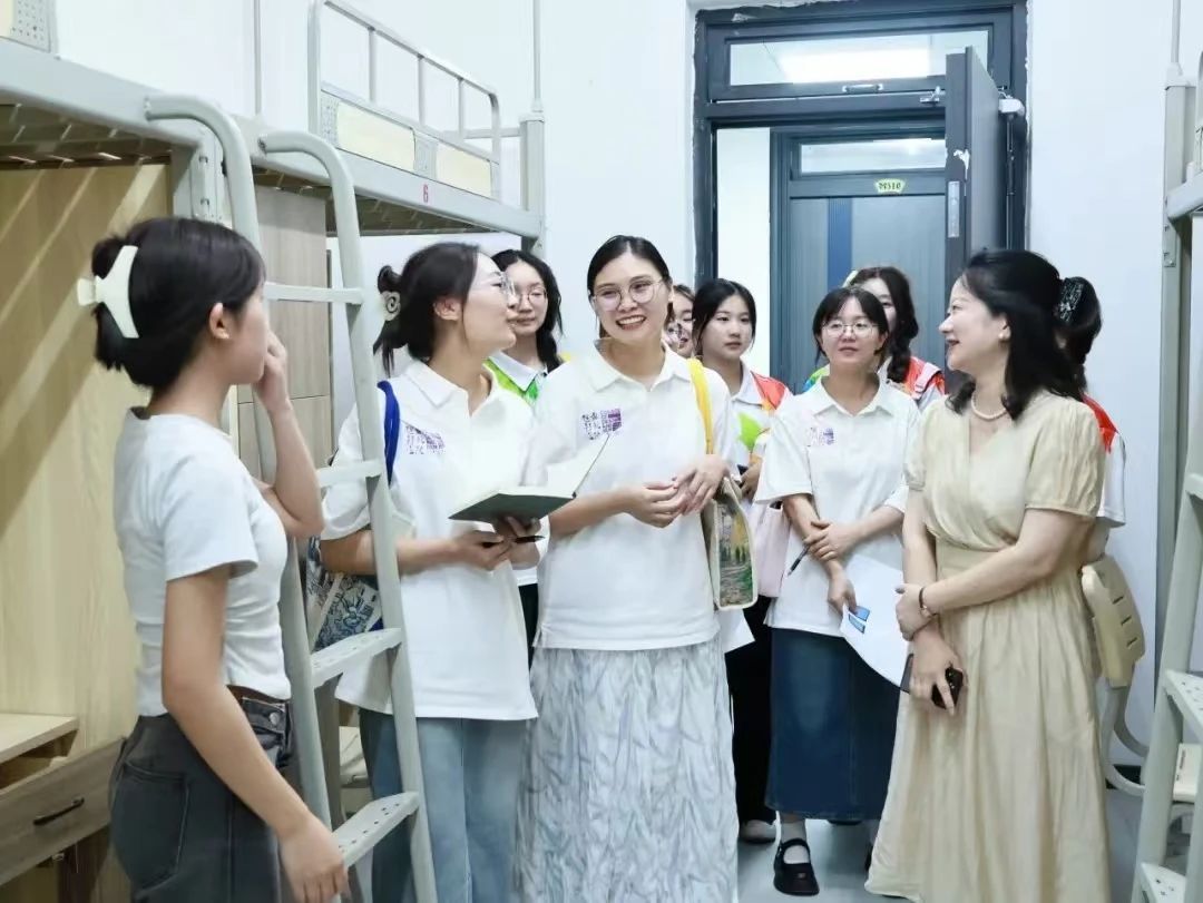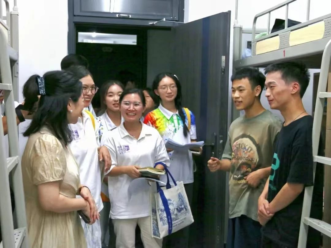 8月31日晚,戏剧影视学院副院长王芳,学工办主任曾玉娇,团总支书记邓艳,新生辅导员周江琴、林倩与各新生班级班导师深入南江书院、丁山书院新生宿舍进行走访关怀。他们与新生们亲切交谈,了解新生的生活安排与思想动态,并就设施安全、反骗防盗等问题进行了详细的讲解与提醒。老师们的关怀与嘱咐如同涓涓细流,温暖着每一位新生的心田。