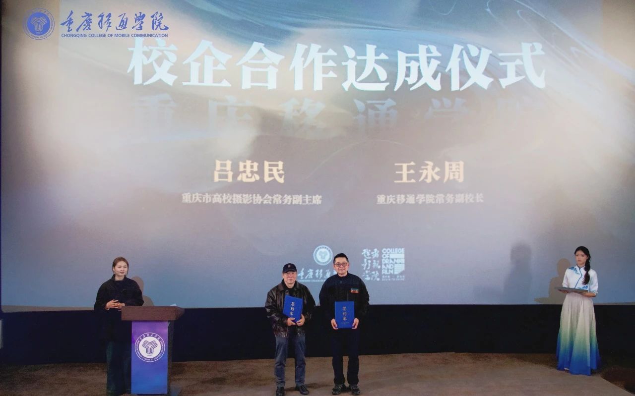 12月6日,重庆移通学院与重庆市高校摄影协会在达成仪式上携手共进,于移通影院4号厅正式宣告深度合作的开始。此次合作缘起戏剧影视学院“西南地区首个全媒体演播厅LED虚拟拍摄实验室”在西南地区形成的巨大影响力,是学校产教融合工作的又一坚实迈进,也是推动“政协校企”四方聚力协同联动,共同谱写新时代影视人才培养新篇章的重要契机。