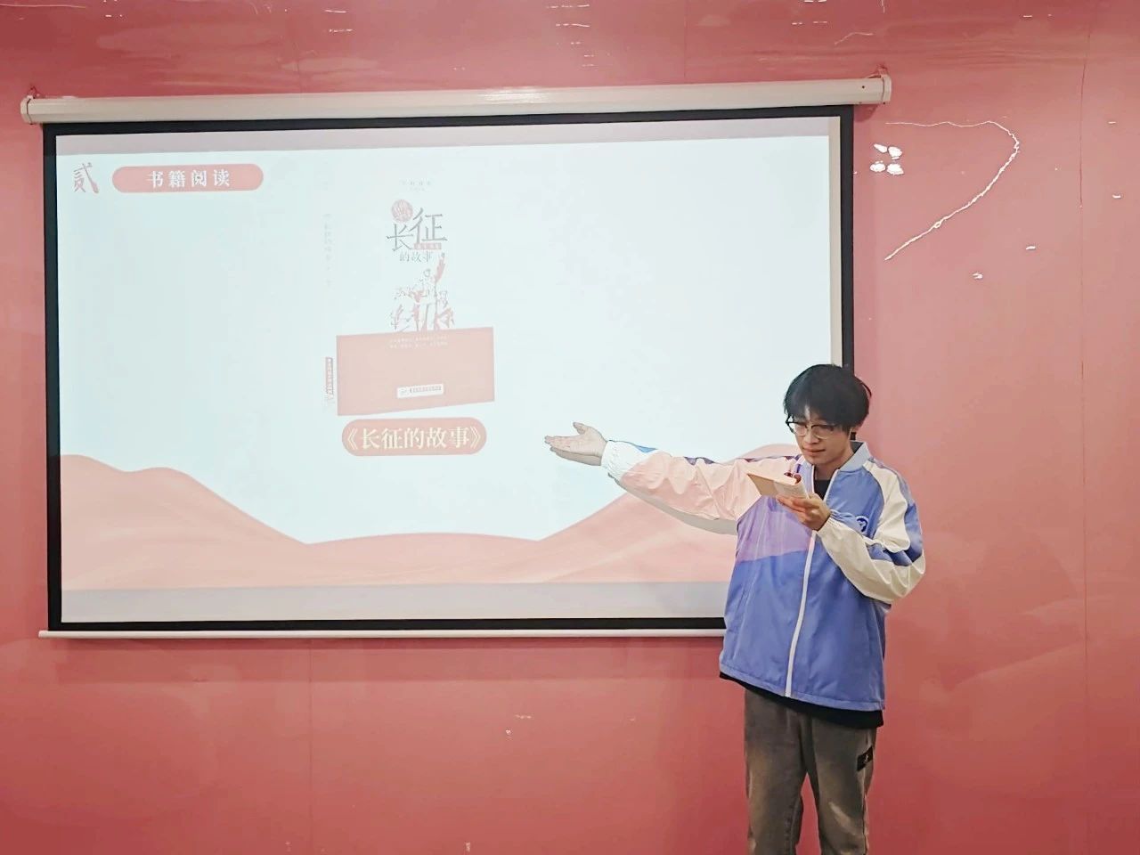 在本次班级活动中,同学的阅读分享让我思绪万千,心潮澎湃难平。长征途中,红军战士跨越万水千山,用顽强意志征服艰难险阻,那是对革命信念的极致坚守。而《林海雪原》里,杨子荣等英雄智斗顽匪,于冰天雪地中捍卫人民安宁,说出那一句经典的“天王盖地虎,宝塔镇河妖”,体现以杨子荣为代表是革命先辈们的机智。这些经典都彰显了先辈们的大无畏精神。赓续红色血脉,就是要传承这种勇往直前、不怕牺牲的英雄气概,在当今之世,砥砺前行,续写华章。