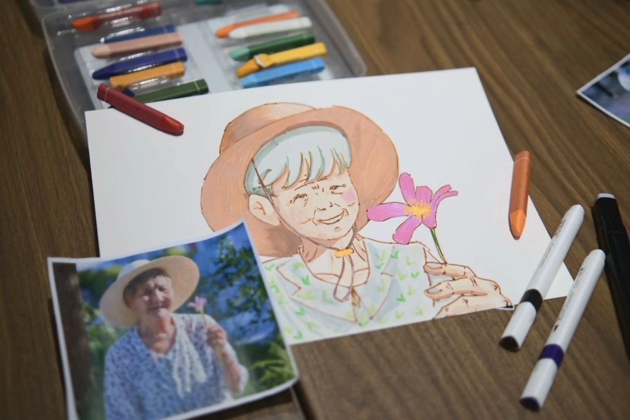 画面中的每一根线条,都满载着对长者的深切敬爱与温情。马克笔的遒劲与蜡笔的斑斓,交织成一幅幅洋溢着蓬勃生机与无限活力的画卷。“小精灵”们以满腔的爱心为墨,精心编织着专属于老人们的现代童话篇章,字里行间,情意绵绵。志愿者们期盼,当老人们目睹这些倾注了无数心血与真情的画作时,能够绽放出由衷的笑容,感受到满满的幸福与温馨。
