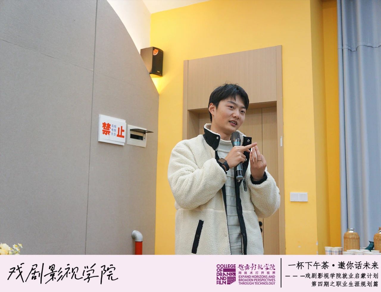 戏娃们在轻松愉快的下午茶时光中相聚,认真聆听着陈冰川老师的就业指导,热情地分享着自身的职业规划和兴趣爱好。陈冰川老师以亲切的语言,持续着这场关于职业选择的话题。在分享过程中,陈老师结合自身的职场经历,为同学们提供了许多实用的建议。 戏剧影视学院林西康老师总结表示:“同学们不必因为兴趣与职业选择不匹配而困惑,新时代的我们未来风光无限,我们有思维、会思考,现在目前拥有的一切都是为我们追求美好生活的助力。”