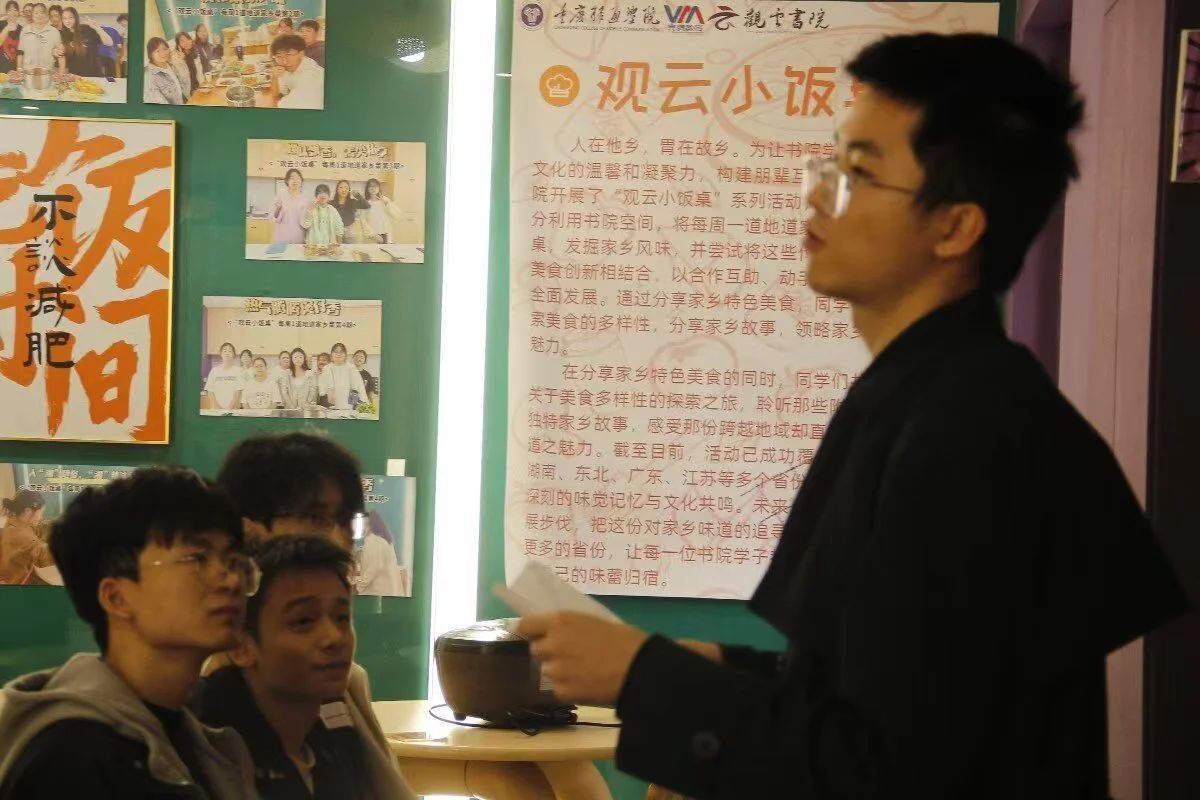 12月7日活动在观云书院谷雨•共享厨房正式举行,现场美食飘香,令人垂涎欲滴。各小组精心制作的地道美食摆满餐桌,来自川渝的麻辣鲜香(水煮热片、雪梨银耳羹、虾羹、小煎鸡)、广东的清淡爽口(爆炒杏鲍菇)、湖南的香辣诱人(小炒黄牛肉)、浙江的热情好客(东坡肉)……每一种美食都以其独特的口味和制作工艺,展现了中华美食的博大精深。