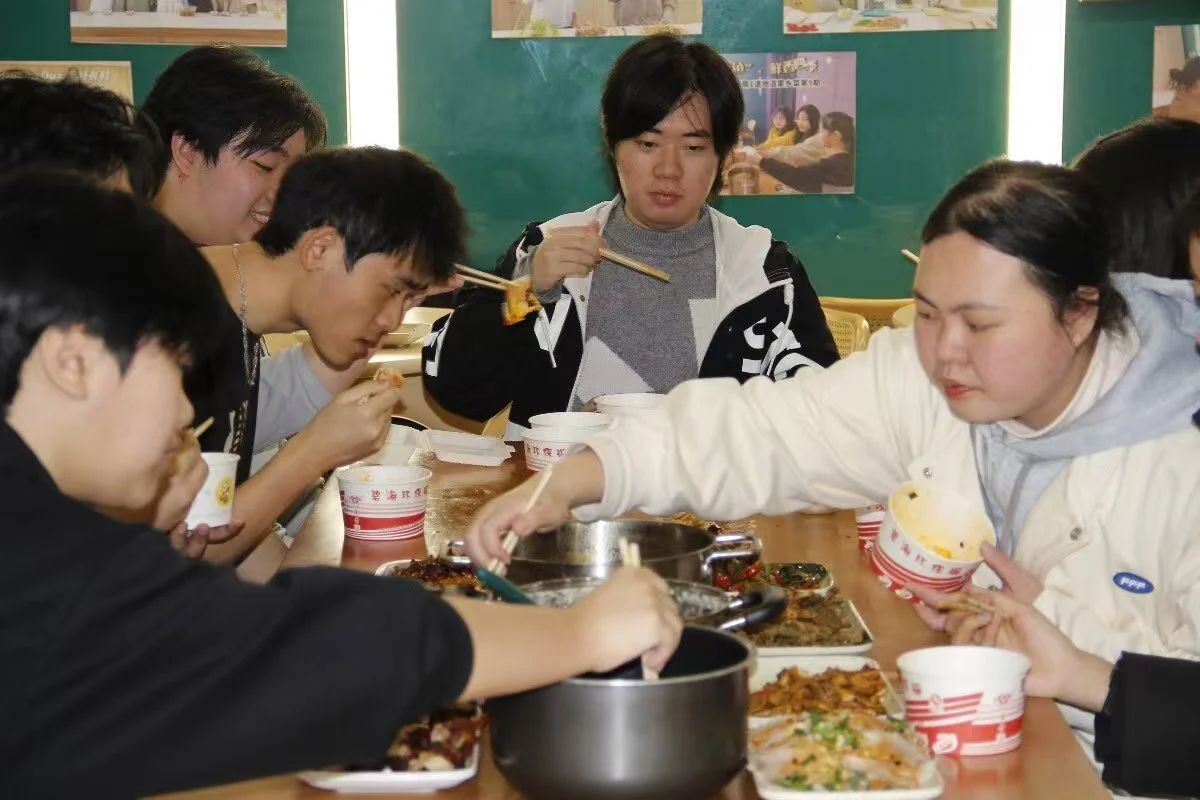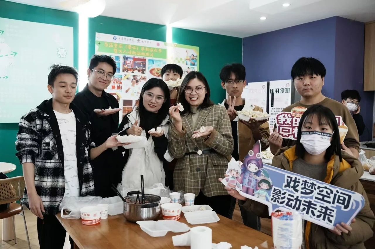 在精心烹制美食的同时,学院学工办主任曾玉娇老师与团总支书记邓艳老师正率领同学们,热火朝天地投入到抄手的制作过程中。师生们共同参与,体验动手制作的乐趣,促进了师生间的互动,传承了地方文脉的精髓。在共同制作的过程中,大家相互帮助、相互支持,形成了良好的氛围,增强了班级的凝聚力和向心力。
