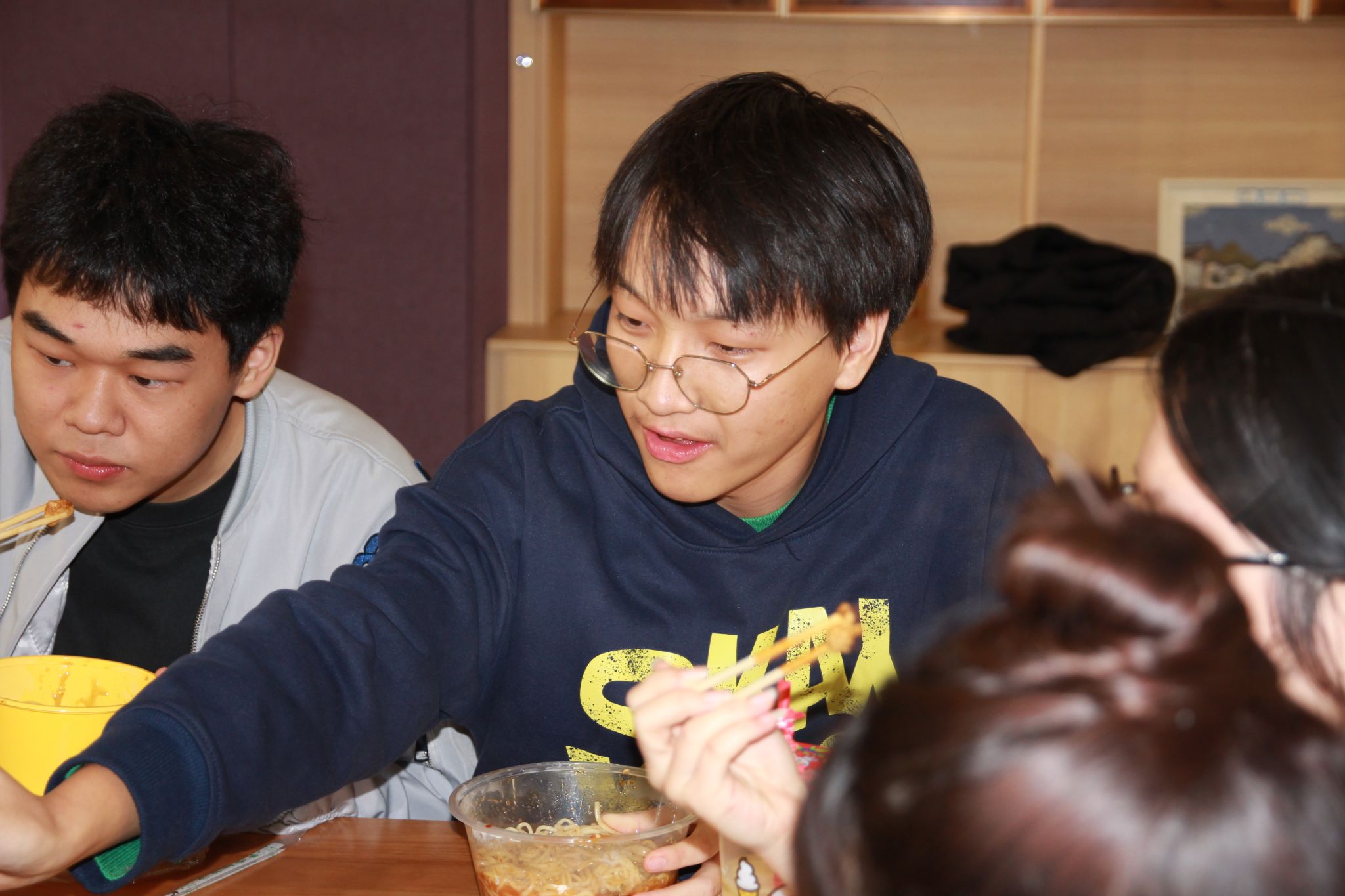 全班同学齐聚一桌,人手一碗重庆小面,品尝着自己的劳动成果,其乐融融,欢笑漫天。每个人介绍着自己的家乡,分享着自己家乡的美食与文化,活动的尾声,浓浓的乡味萦绕着每位同学。这个寒冷的冬天由新媒体技术三班同学在重庆添上了一抹暖心。最后,同学们一起收拾了厨余垃圾,将场地还原。