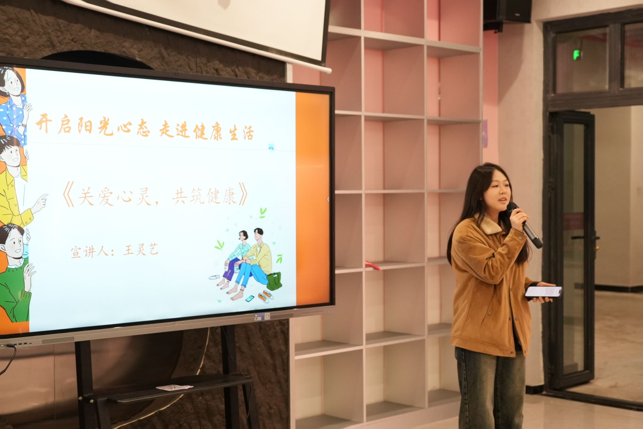 活动伊始,首先由团支书担任本次宣讲人,宣讲的主题是《关爱心灵,共筑健康》。随后开启本次的完满超级团支部活动之旅。团支书在团组织中扮演着重要的角色,不仅负责团的日常工作和活动,同时也是连接团员与党组织的桥梁。此次宣讲的目的是希望同学们能更好地了解自己的内在状态,释放自身的心理压力。全身心放松地投入到此次活动中。此次活动规模如此之大,为的就是让同学们能减轻淤泥于心的包袱,尽快走出抑郁的漩涡。
