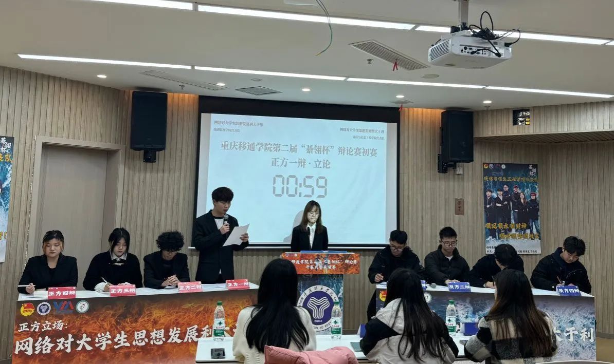 初赛环节,戏剧影视学院对阵通信与信息工程学院,戏剧影视学院辩题是“网络对大学生思想发展利大于弊”。开篇立论便条分缕析地阐述网络为大学生带来的诸多益处。网络上学术资源应有尽有,各类在线课程打破了学习的时空界限,让大学生能接触到顶尖教育资源,极大地拓宽了知识视野。反方通信与信息工程学院指出网络信息良莠不齐,虚假新闻、低俗内容充斥其中,大学生缺乏辨别力,极易被误导,致使价值观扭曲。双方你来我往,精彩绝伦,最终戏剧影视学院成功晋级半决赛。