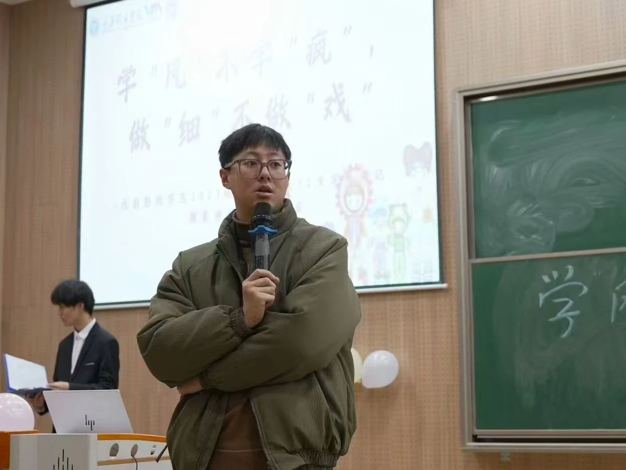 学期末的钟声悄然临近,同学们即将步入充满考验与收获的期末考试周。在这关键时刻,为激发同学们的备考热情,交流学习心得,并加强学风纪律建设。戏剧影视学院2023级、2024级动画、戏剧影视文学专业于2024年12月20日下午14点在贤者楼423报告厅精心筹备了一场以“学‘风’不学‘疯’·做‘细’不做‘戏’”为主题的年级盛会。此次年级会内容丰富,形式多样,包括学生手册知识竞赛、学霸经验交流、创意小品演绎及惊喜抽奖等环节,为师生们献上一场智慧与欢乐交织的视听盛宴。