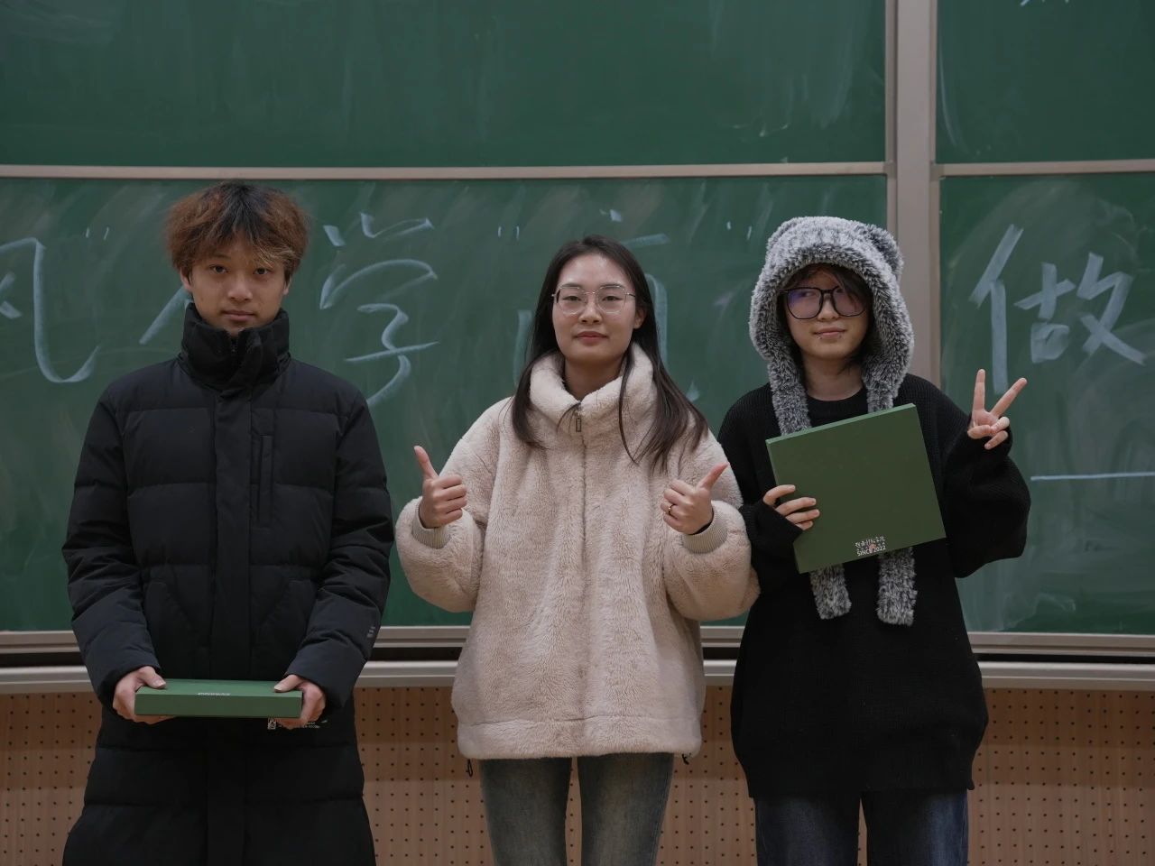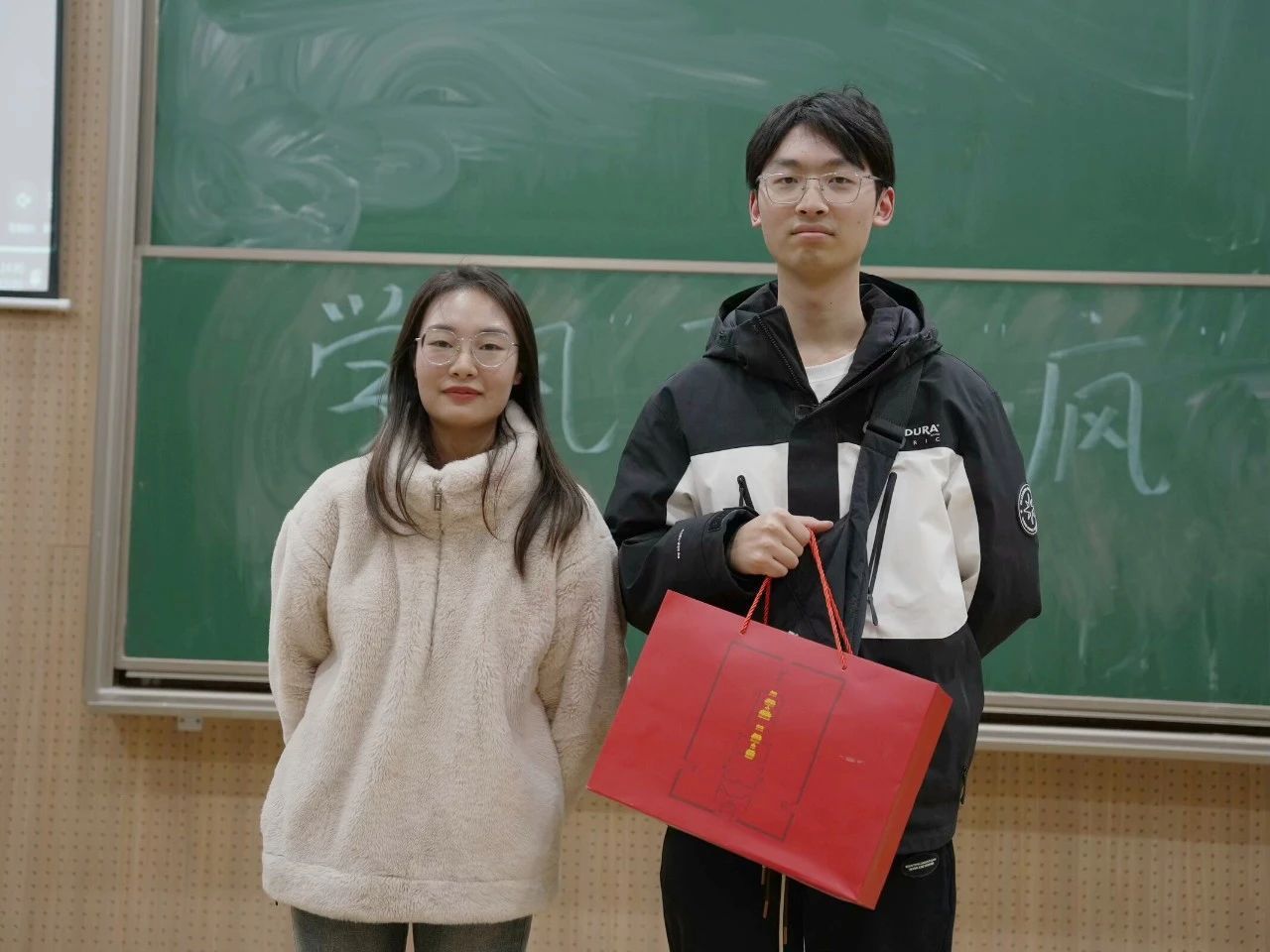 当然,此次年级会作为2024年度最后一次主题年级会,24级戏娃们也将迎来他们第一次大学考试,老师们也为到场的戏娃们准备了一些不一样的惊喜。随着大屏幕缓缓滚动,戏娃们的名字纷纷出现在大屏幕上,当最终停止在某一位戏娃的头像上,戏娃们都忍不住欢呼雀跃。幸运获奖者的脸上都绽放出灿烂而幸福的笑容,这份突如其来的喜悦不仅为他们的心灵带来了一丝慰藉,也为即将迎来的期末考试周平添了几分轻松与美好的期待。