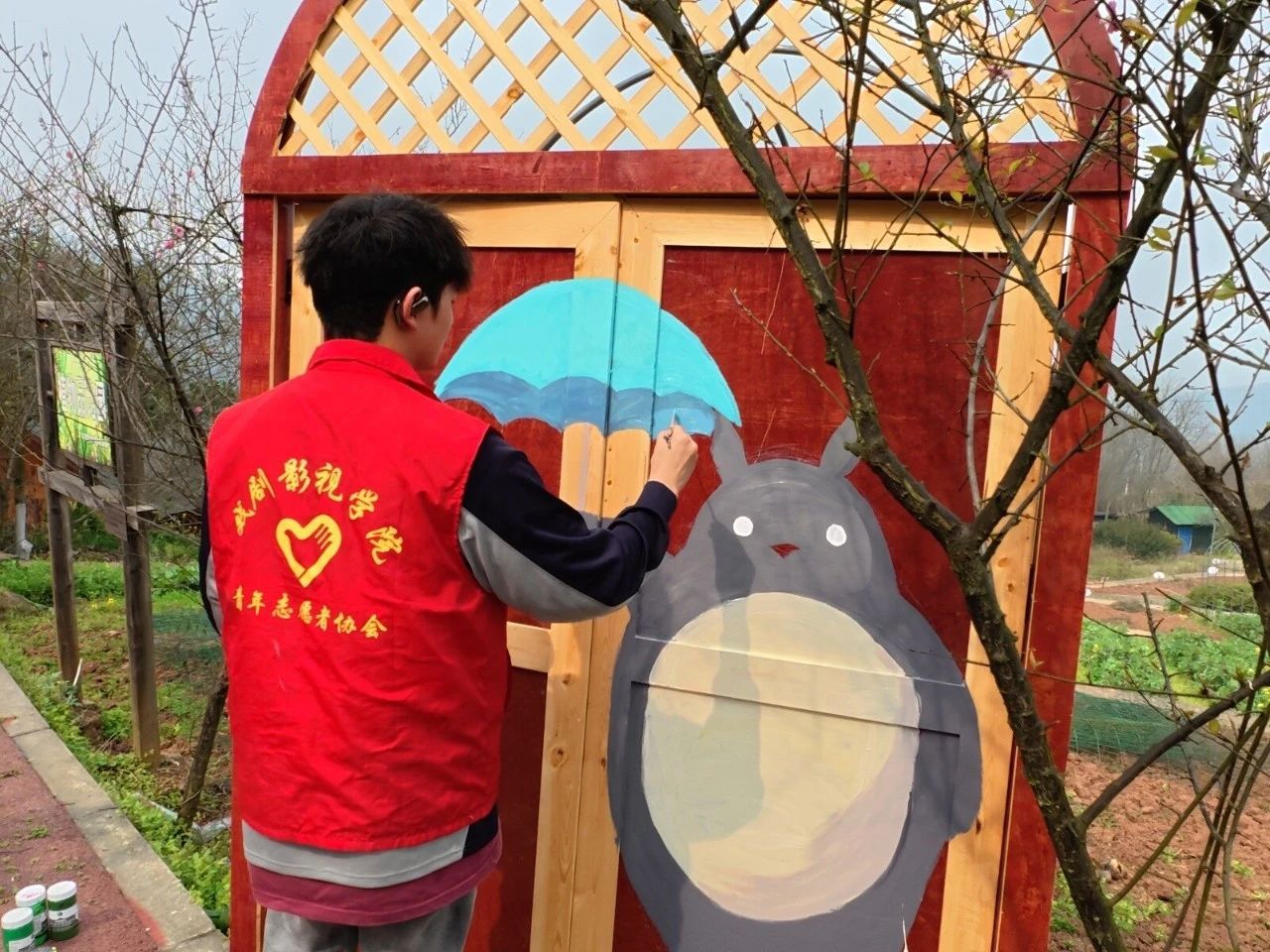 綦江区云翔综合教育实践基地致力于服务各乡镇的困境儿童和留守儿童,通过体验式教育拓宽他们的视野,让小朋友们能够拓宽视野、增长知识。2025年3月2日,戏剧影视学院青年志愿者协会“益术家”支队于在云翔综合教育实践基地开展了“云翔绘梦·志愿育才”为主题的志愿活动。此次活动,志愿者们用他们的艺术才华,为基地建设绘制了一幅幅充满童趣与文化内涵的墙绘作品,为孩子们营造了一个更加丰富多彩的学习环境。