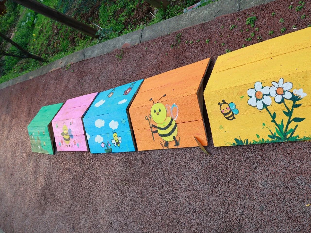 在活动现场,志愿者们挥毫泼墨,将小蜜蜂忙碌采蜜、制作蜂蜜的生动场景栩栩如生地呈现在墙上。他们的笔触细腻、色彩鲜艳,将小蜜蜂的勤劳与智慧展现得淋漓尽致。这些墙绘作品不仅美化了基地的环境,更成为了向孩子们传播农业知识与文化的生动教材,作为传播农业知识文化的生动教材,墙绘以直观有趣的方式,吸引孩子们了解蜜蜂的劳作过程、蜂蜜的形成,以及背后的农业文化。