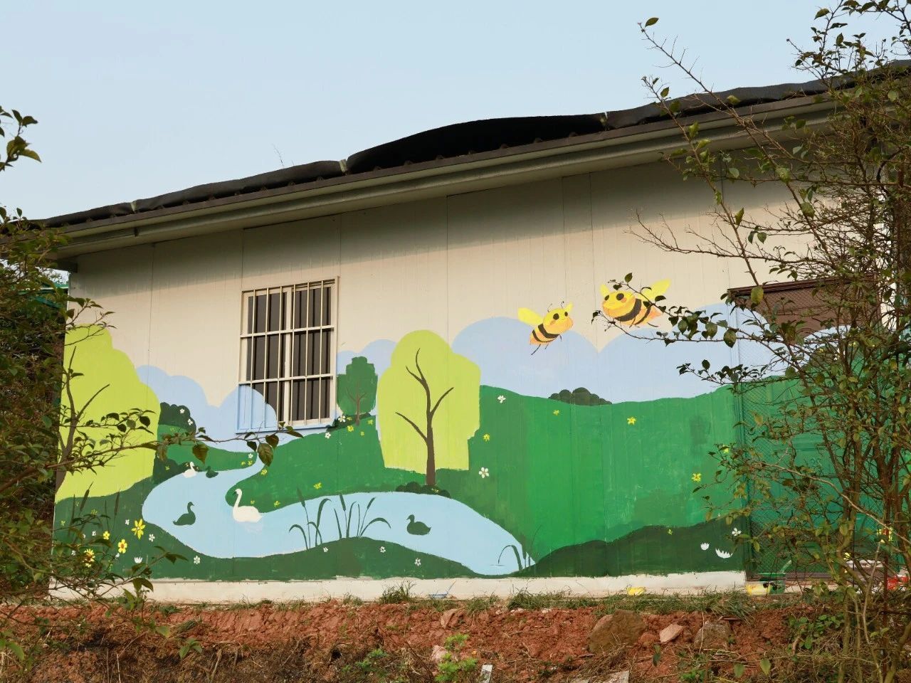 经过一天的辛勤努力,墙绘作品终于大功告成。看着这些色彩斑斓、生动有趣的墙绘作品,志愿者们心中充满了成就感与喜悦。这些作品美化了基地的环境,更在潜移默化中传递着知识与正能量,为孩子们拓宽视野、增长知识提供了有力的支持,同时进一步提升孩子们对大自然和农业的兴趣,在他们心中播下探索科学、尊重劳动的种子。