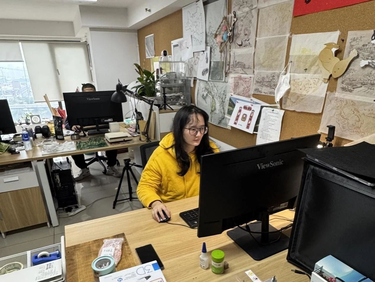 在挂职锻炼期间,廖静秋老师全身心投入到项目流程与运作中,积极融入团队,参与公司现有项目,快速积累公司实际操作流程经验,致力于在实践中学习跨学科多元融合的经验。在这过程中,廖静秋老师深入学习资深设计师的动画渲染思路和技巧,运用行业前沿技术处理项目任务,与团队成员密切协同,共同完成公司项目的动画渲染和制作工作。除了软件方面,廖静秋老师还进行实体模型搭建。在这个过程中,她充分发挥自身专业优势,同时虚心向公司的资深设计师请教,不断汲取新的知识和技能。