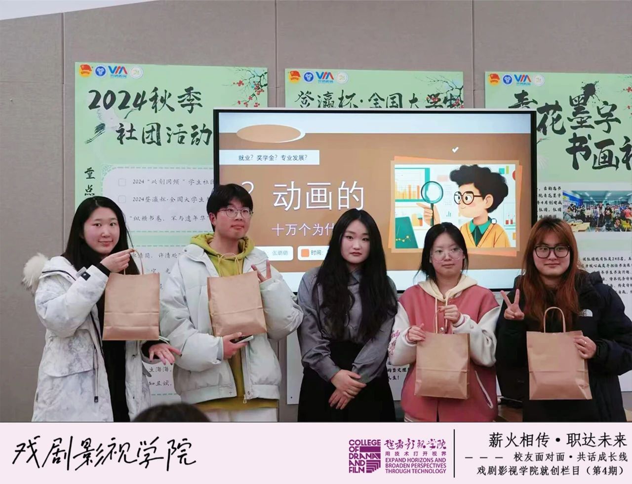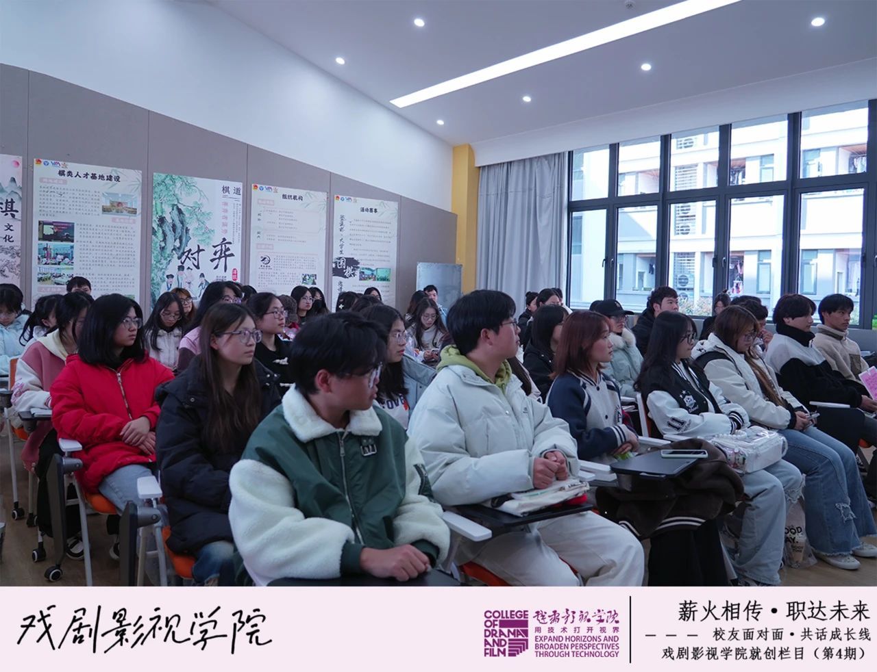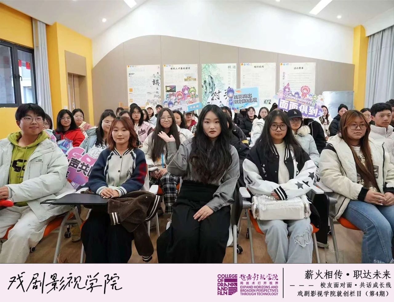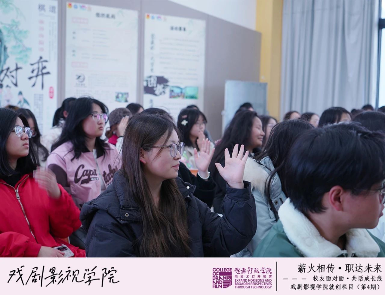 本次“校友面对面·共话成长线”就创栏目的成功举办,发挥了优秀校友的朋辈引领作用,为同学们提供相互交流学习的平台,通过校友的真实经历分享,学生们不仅拓宽了就业视野,也增强了职业规划意识。希望每位戏娃通过此次活动能够体会到“下一步怎么走”的重要,相信在未来的职业道路上,他们将以更加自信和坚定的步伐,迎接每一个挑战,取得优异的成绩。