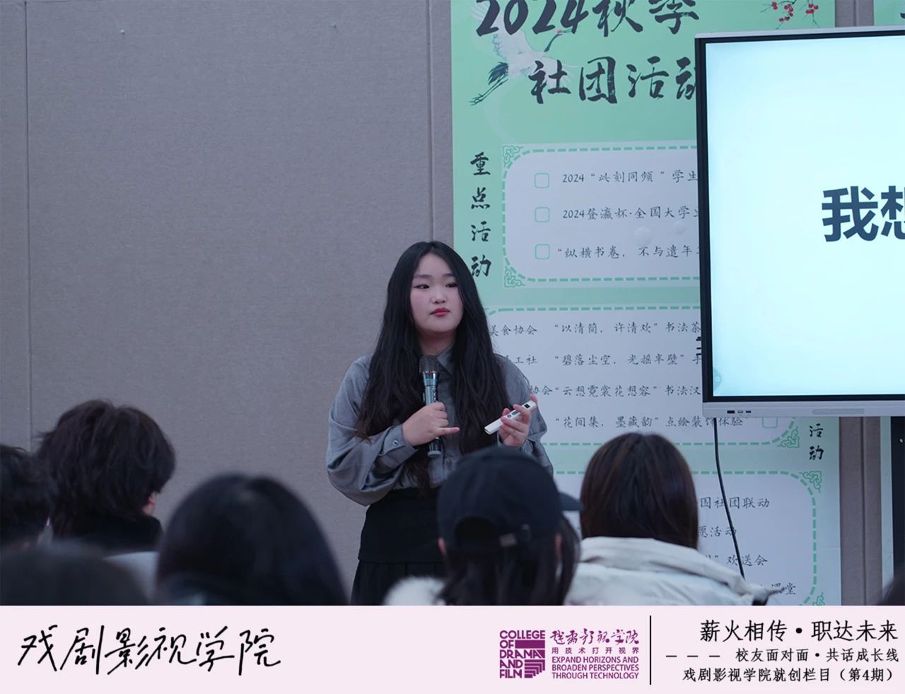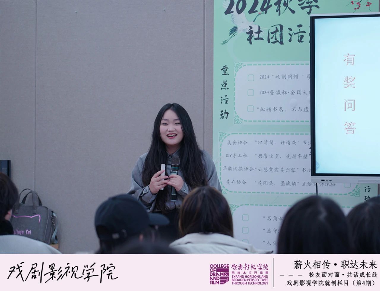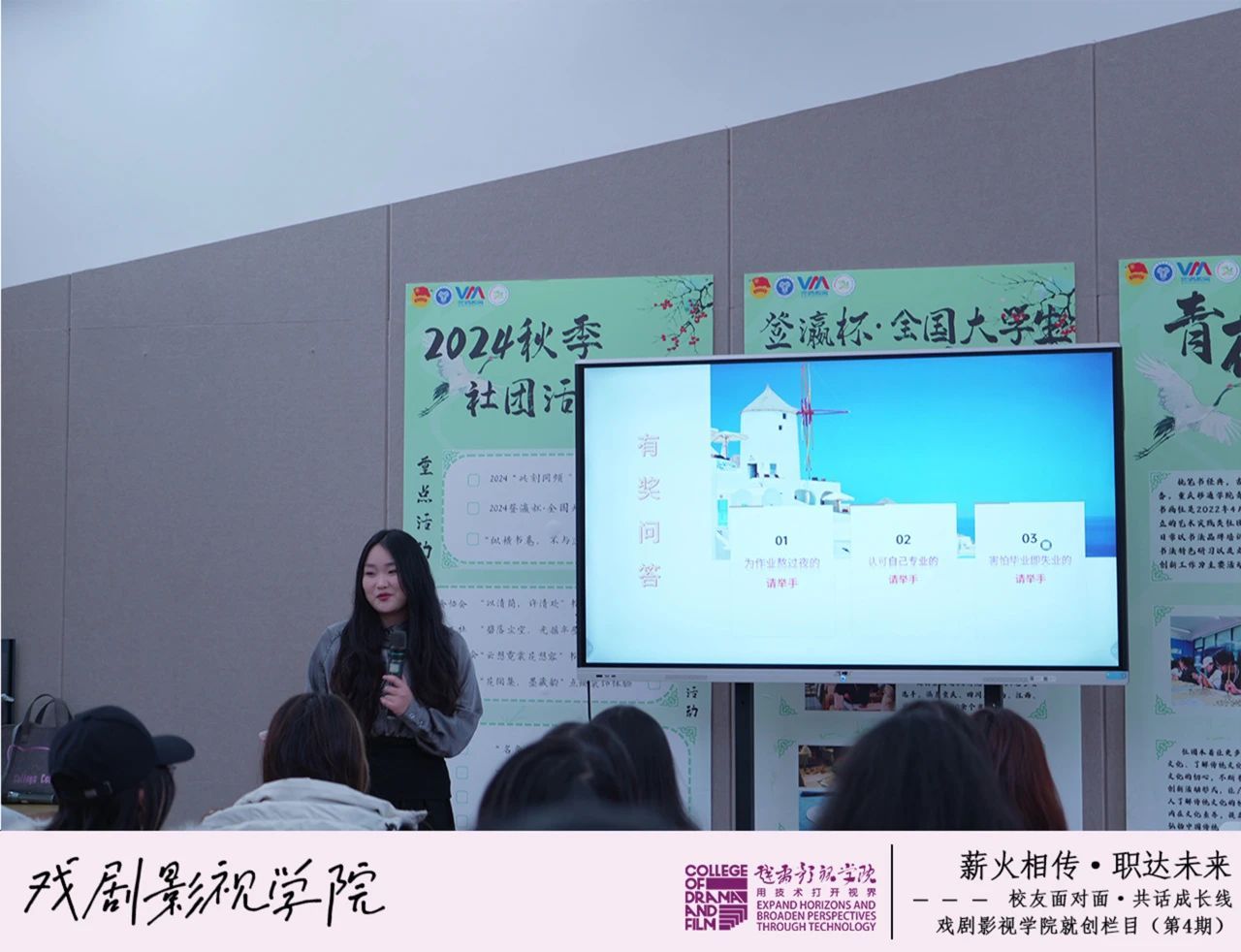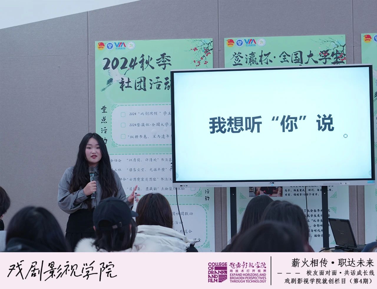 本次“校友面对面·共话成长线”就创栏目的成功举办,发挥了优秀校友的朋辈引领作用,为同学们提供相互交流学习的平台,通过校友的真实经历分享,学生们不仅拓宽了就业视野,也增强了职业规划意识。希望每位戏娃通过此次活动能够体会到“下一步怎么走”的重要,相信在未来的职业道路上,他们将以更加自信和坚定的步伐,迎接每一个挑战,取得优异的成绩。