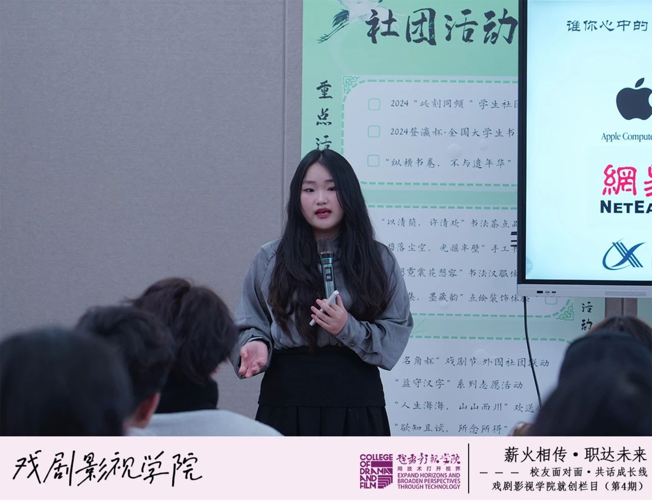 活动最后,学姐表示自己即将毕业,她希望同学们能够珍惜在校时光,积极规划自己的职业生涯。她鼓励大家勇敢迈出第一步,投递简历、寻找实习机会,为自己的未来打下坚实的基础。这些言辞真挚感人,引发共鸣,戏娃们情不自禁热烈鼓掌。