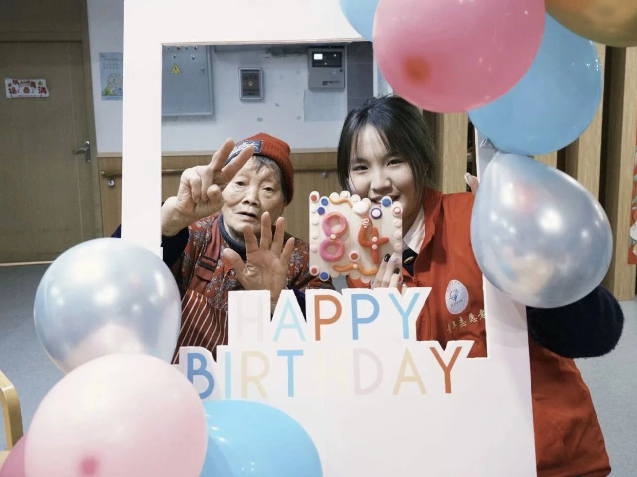 此外,志愿者们还组织了一场生日主题的合影活动。志愿者们贴心引导老人摆姿势,调整表情,整理好着装,记录下他们暖心的笑容。在一次次的快门声中,这一幸福的时刻下地笑容将被永恒定格,笑在照片上,暖在人心里。
