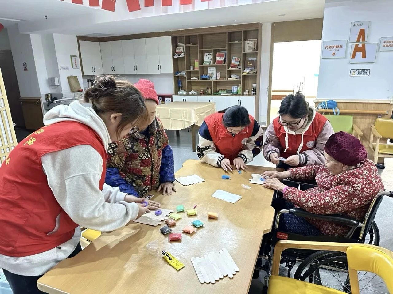 随着讲解的深入,老人们也迫不及待地开展了自己的创作。有的老人专注地捏着自己的花朵,有的老人正在给自己的作品添上五彩缤纷的颜色,还有的老人则是用精美的贝壳绘制出属于自己的海洋。活动现场的说话声和欢笑声中掺杂着粘土和胶水特有的清新气息,空气中弥漫着一种难以言喻的欢乐和感动。志愿者们穿梭其间,耐心地回答老人们的各种问题,适当的给予鼓励和指导,让每个老人都能感受到独属于自己的成就感和幸福感。