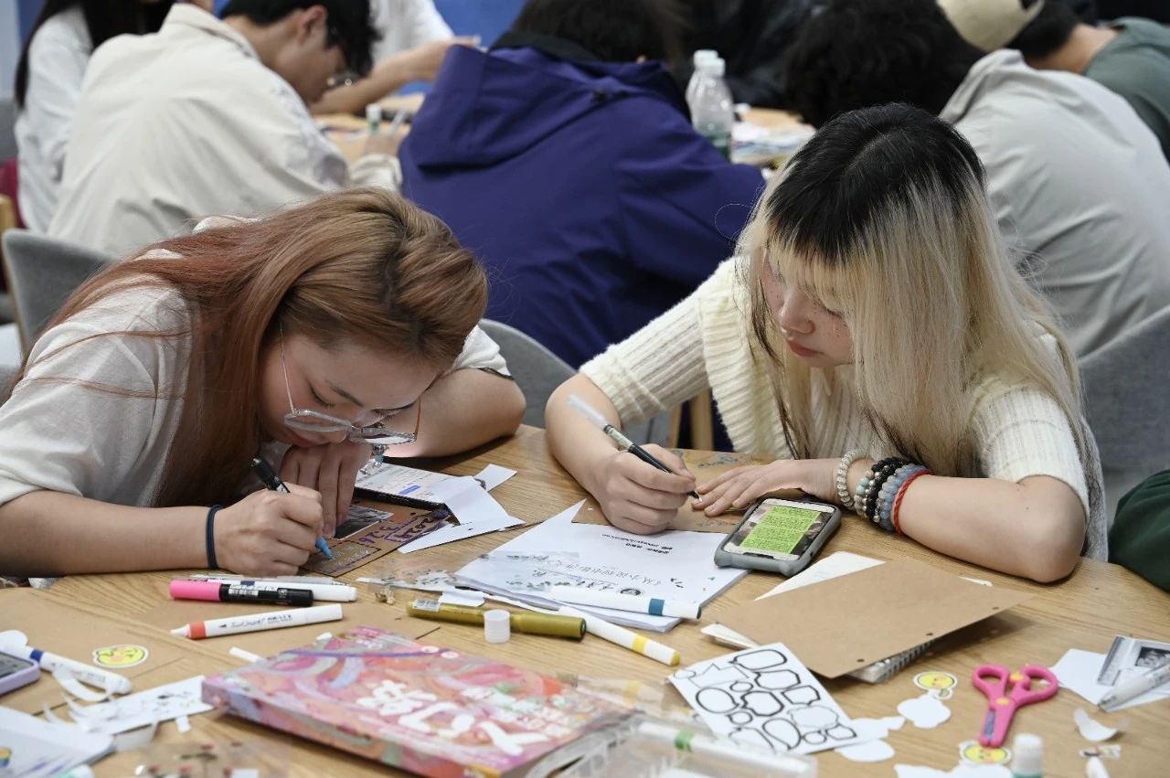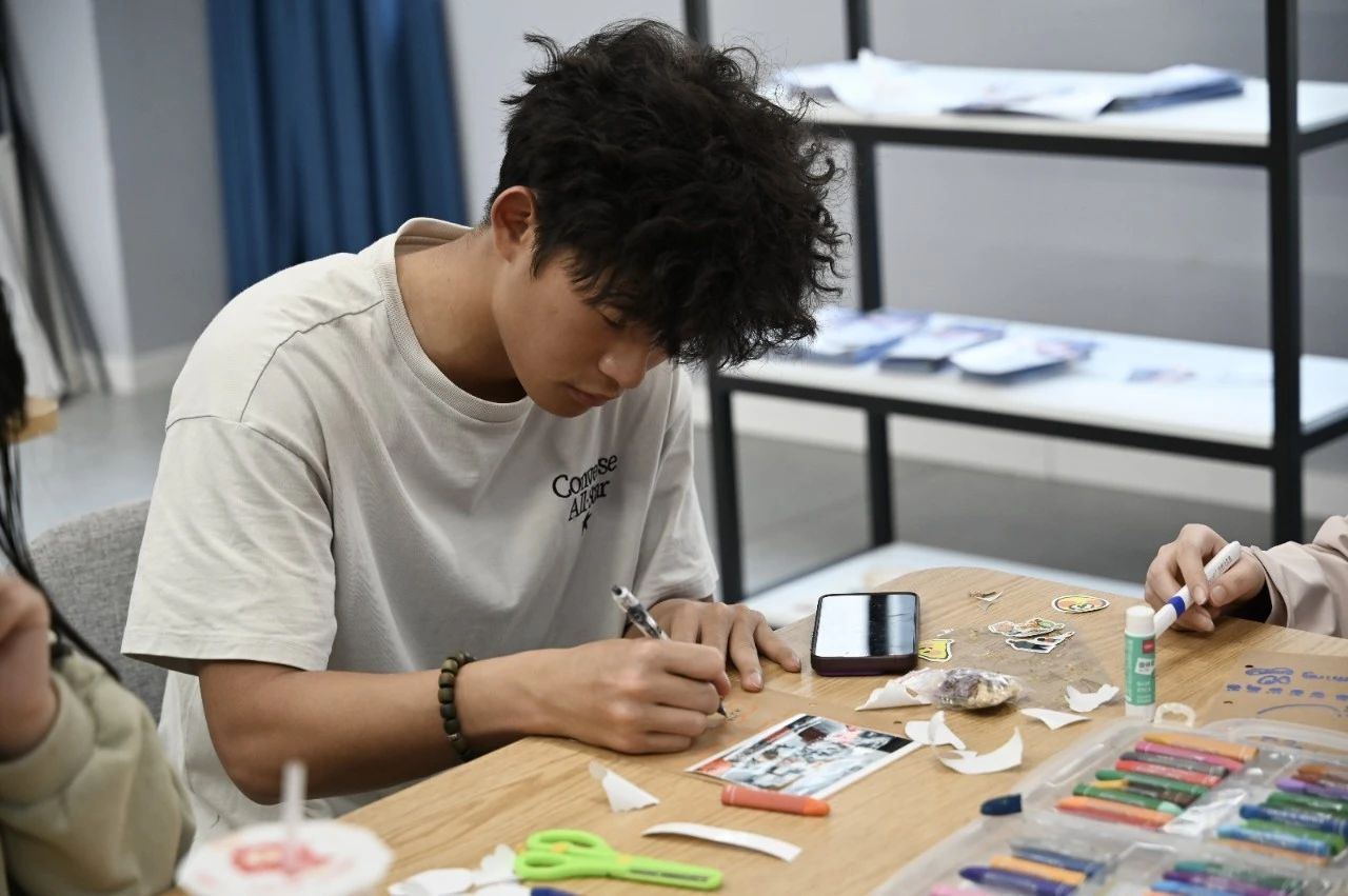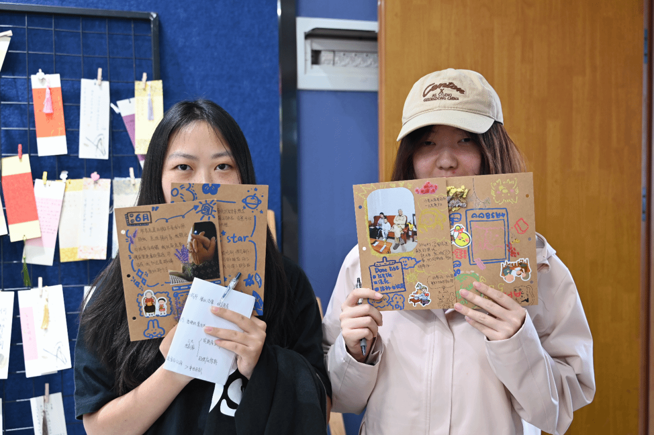 故事日记环节将活动推向高潮。现场参与者全神贯注,手中的笔像是有了灵魂,在洁白的纸张上肆意舞动,将爷爷奶奶那些尘封已久的往事娓娓道来。大家精心挑选与故事主题相契合的贴纸,细致地装饰在页面各处。胶棒在参与者手中传递,将一页页承载着回忆的纸张精心装订,就像把两代人的情感紧密黏合。每一页日记都倾注着同学们的心血,充满爱与奉献。