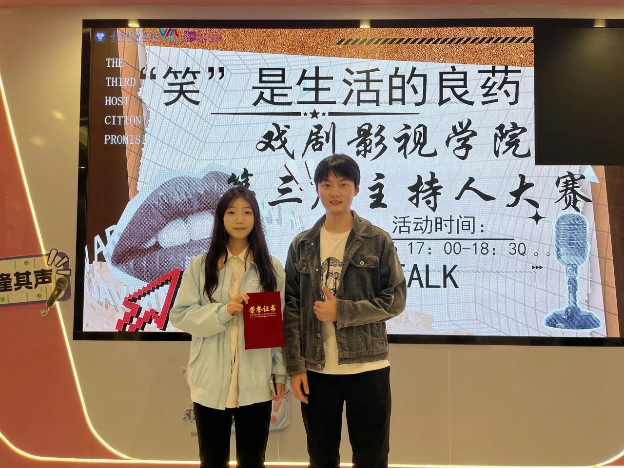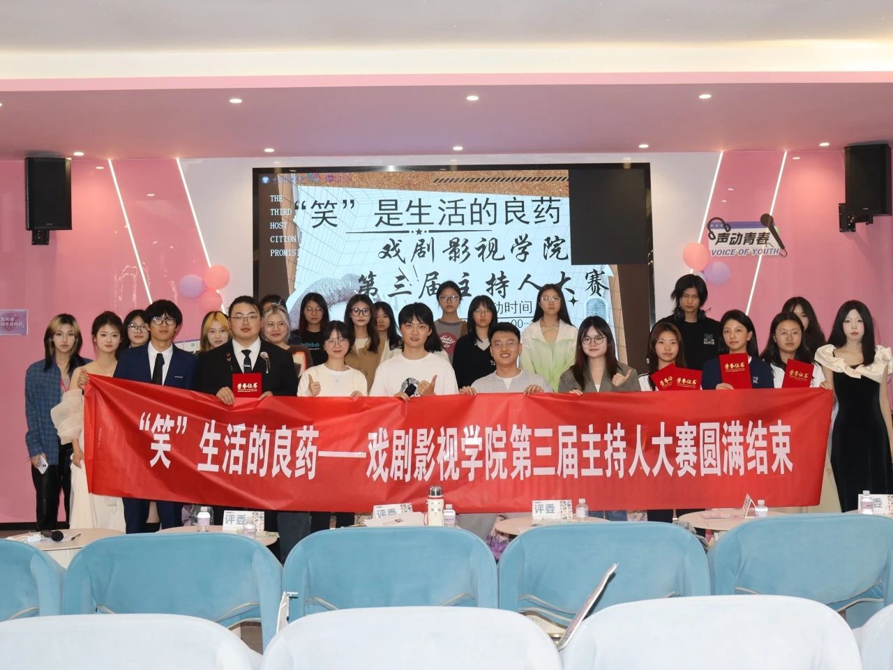 2025年3月26日,戏剧影视学院第三届主持人大赛以“‘笑’是生活的良药”为主题,在师生们的欢声笑语中顺利收官。本次大赛以脱口秀为媒介,以舞台为画卷,为学院艺术文化建设增添了鲜活的一笔。