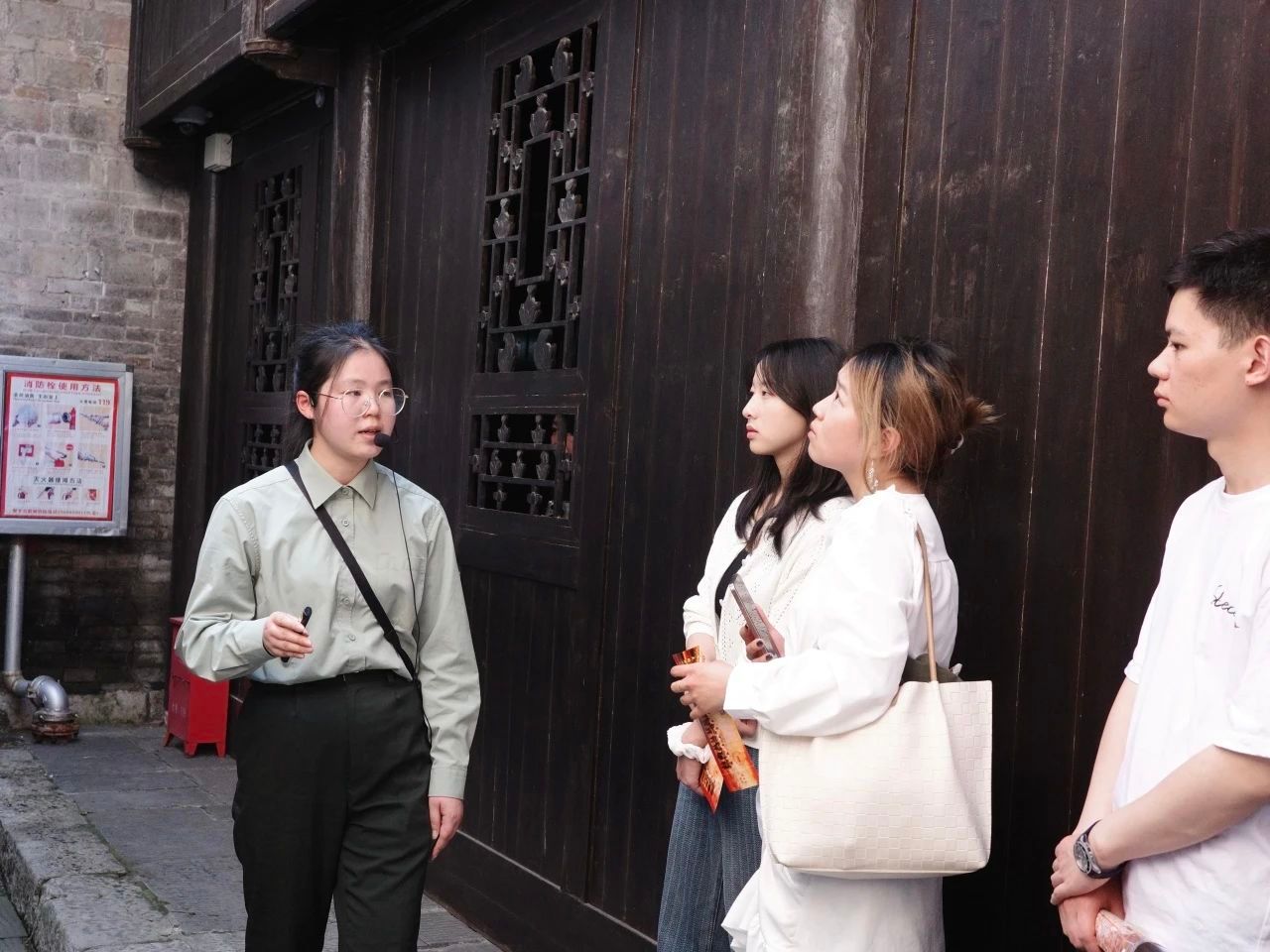 黎平会议作为红军长征途中第一次中央政治局会议,会议否定了错误军事路线,为遵义会议奠定基础,被誉为“伟大转折的起点”。在讲解员的带领下,师生们走进胡家院子,这座始建于清代的侗族特色建筑,青砖黛瓦、雕梁画栋,原本普通的侗族民居,却在1934年12月成为改变中国革命命运的舞台。讲解员指着天井四周的雕花门窗介绍着其中的意义,“选择在这里召开会议,不仅因为其隐蔽的地理位置,更因侗族群众对红军的无私支持。”随着讲解深入,历史的褶皱层层展开,师生们不仅了解了黎平会议的历史背景、会议内容,也更加深入体会了黎平会议的重要意义。
