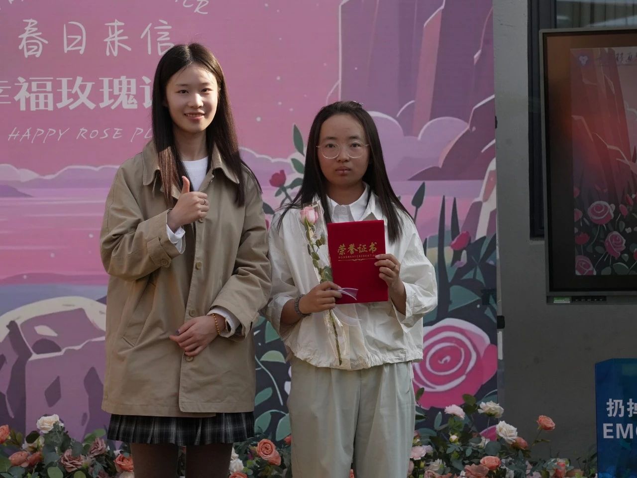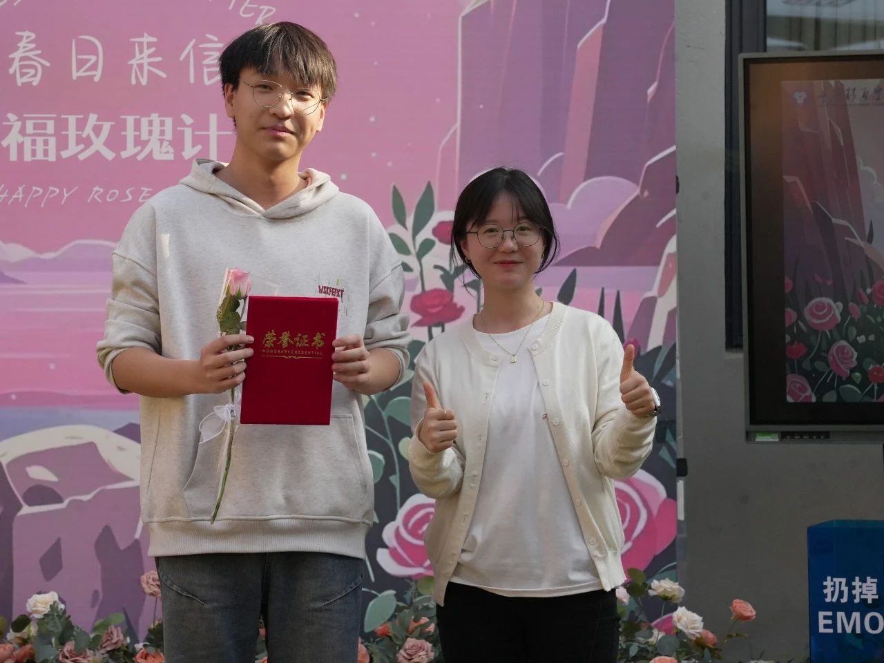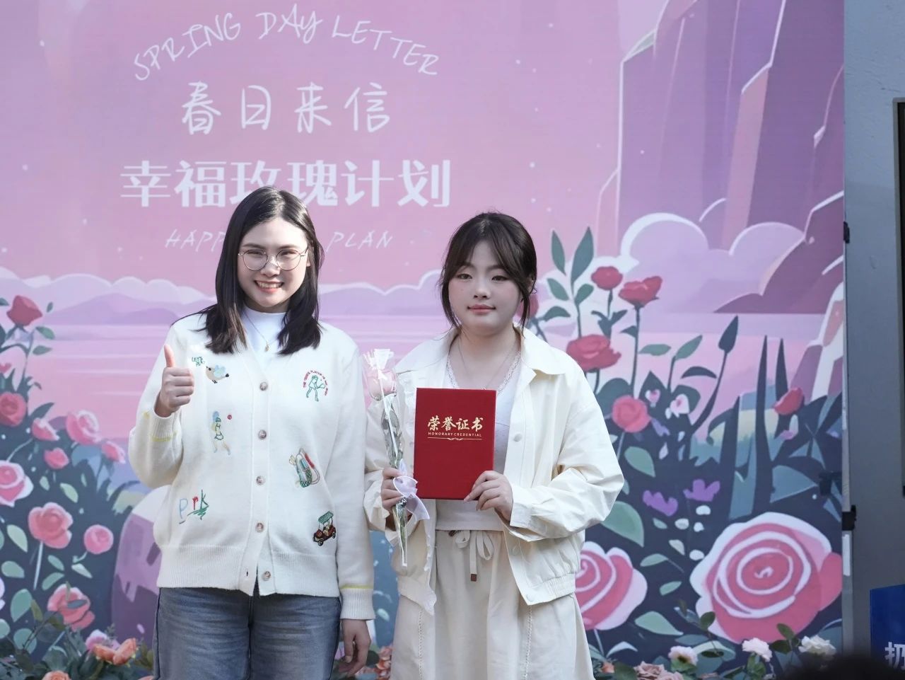 根据前期线上故事征集活动的参与度以及现场综合评估表现情况,最终评选出了4位表现优异的同学。在众人的掌声中,获奖同学依次上台领取荣誉证书与象征美好的玫瑰,并一同合影留念。老师们鼓励同学们将活动中的感悟与收获转化为日常成长的动力,持续保持对心理健康的关注,以乐观积极的心态面对生活中的挑战,更引导大家深入关注自身情绪,学会在生活中发现美好、汲取力量。