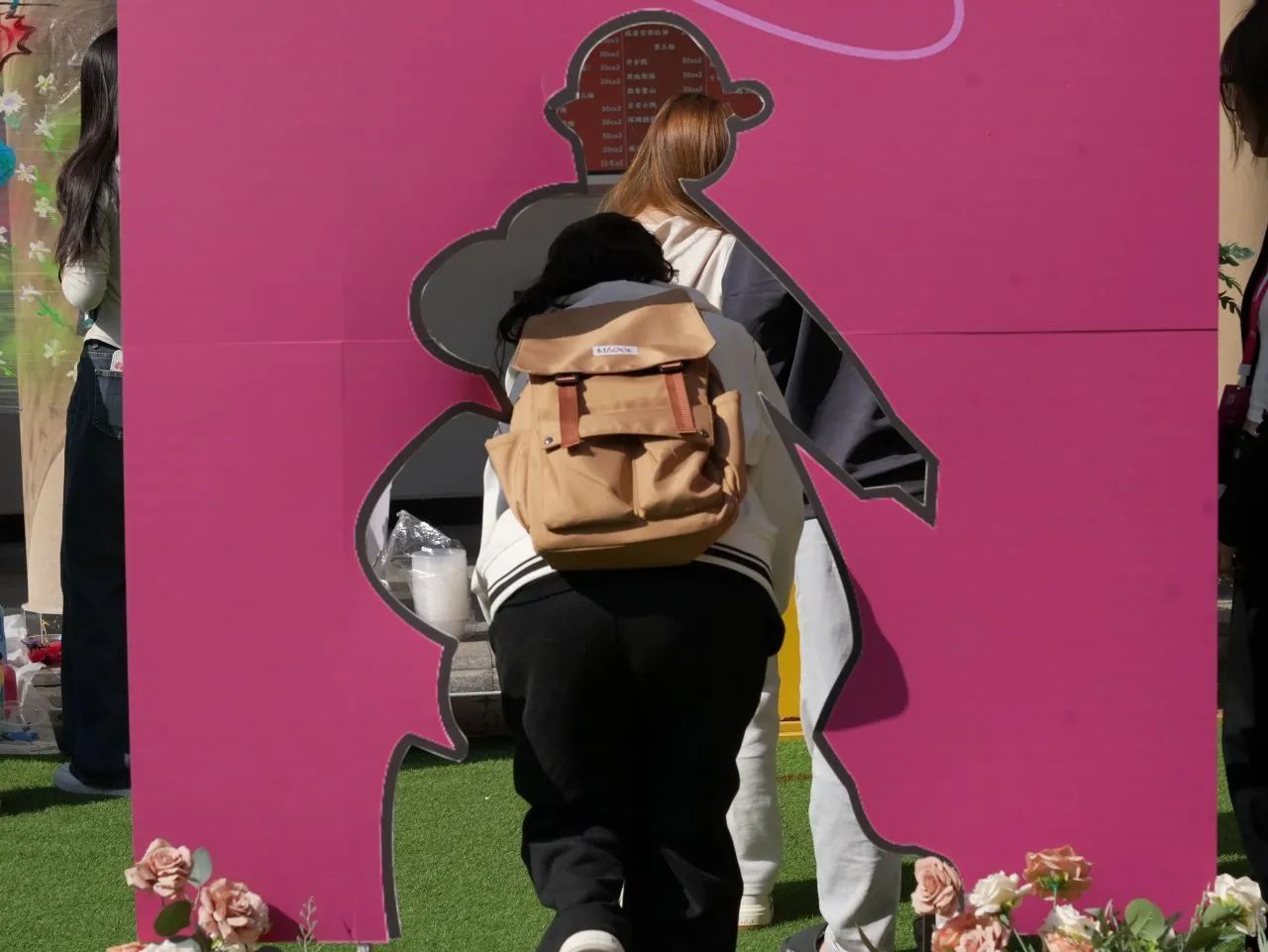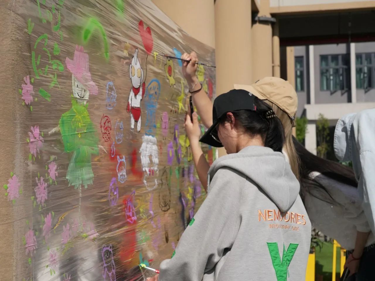 活动伊始,同学们积极投身于“好运盲盒”“爱的抱抱”“穿体墙”和“幸福玫瑰墙”“幸福多巴胺涂鸦墙”5项趣味活动。同学们依据现场指引,自由选择参与活动,集齐任务贴纸。