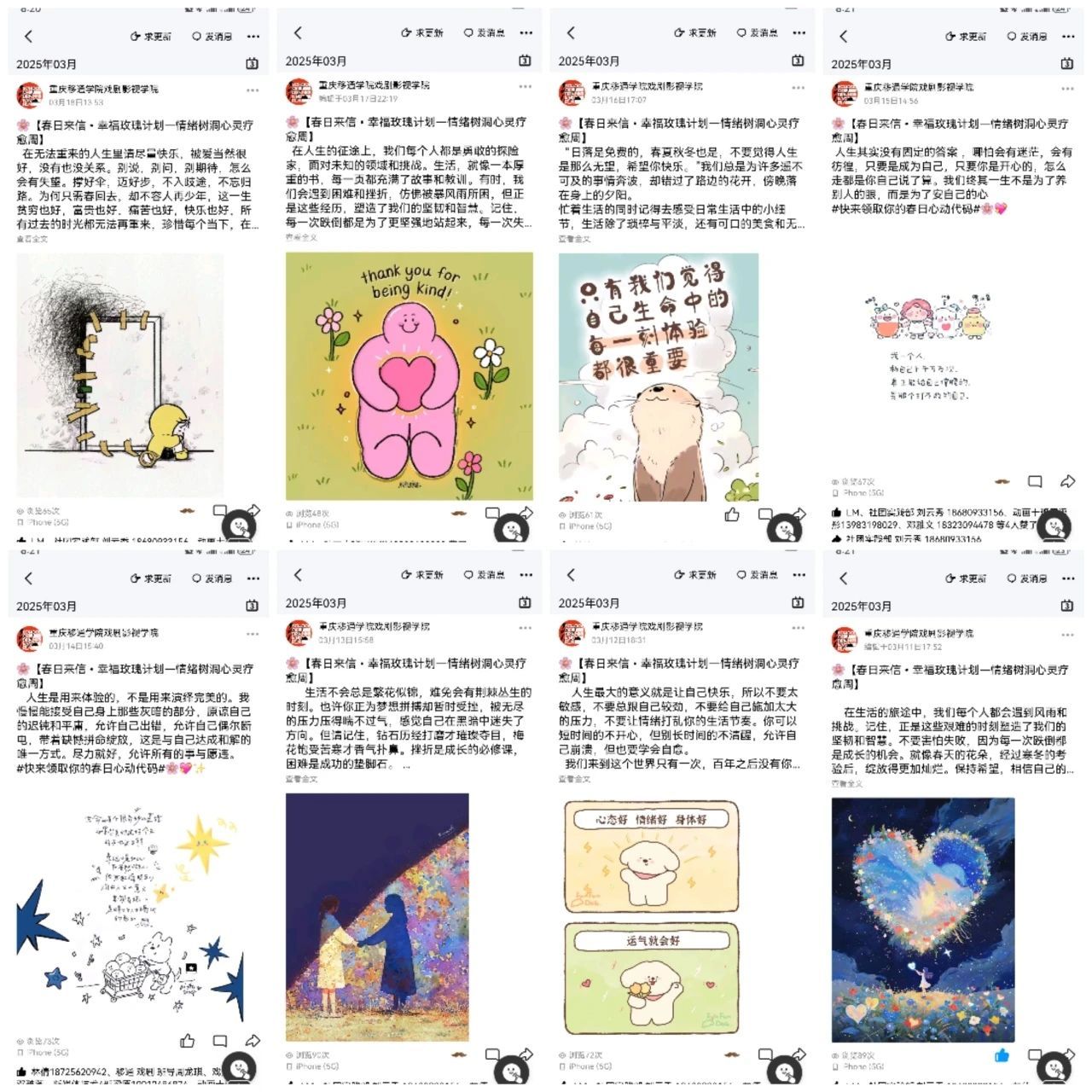 通过这些精心设计的活动,同学们在互动中探索心灵世界,释放压力,增进彼此间的交流与支持。同学们既是参与者,也是受益者。它打破了传统教育的刻板印象,以轻松、互动的形式,让心理健康理念深入人心,激发同学们主动关注自身和他人的心理状态,为校园心理健康教育注入源源不断的活力。