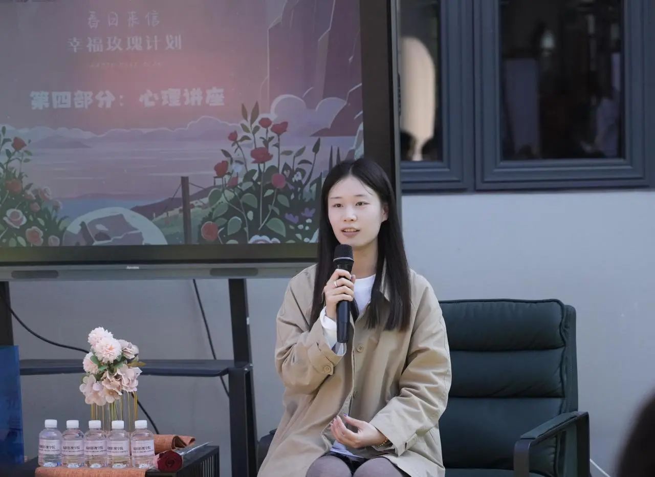 在整个活动过程中,“集爱心贴纸•赢浪漫惊喜”环节让师生在趣味活动中探索内心,释放压力;“玫瑰抱团乐•数字炸弹躲”环节使得大家在紧张刺激的报数中不仅锻炼了思维能力和反应速度,也增进了彼此间的交流与友谊;“春日围坐•共话温暖与忧郁”环节,师生一起敞开心扉分享生活中的压力与收获,释放情绪,收获幸福的力量;“聆听旋律•舒缓压力与情绪”环节,老师通过专业的知识在压力管理和情绪释放等进行答疑解惑,为同学们系统传授情绪管理与压力应对技巧,让科学知识成为守护心理健康的有力武器。