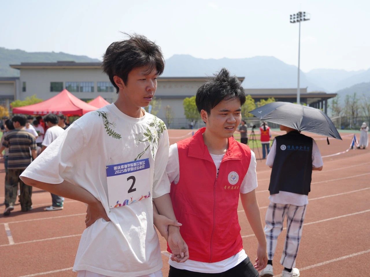 2025年4月17日,重庆移通学院春季运动会隆重开幕。青年志愿者协会组织43名志愿者全程参与赛事服务,以热情的微笑和专业的行动保障运动会顺利进行,诠释了“奉献、友爱、互助、进步”的志愿精神。