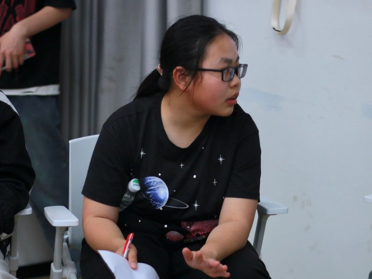 台下评委时而捧腹,时而静默,所有表演结束后,代敏老师现场示范情绪传递技巧:用不同步伐表现“犹豫—坚定”的转变,引导演员用呼吸节奏控制表演张力。吴倩蓉老师用“玫瑰”点亮创意:“你们将物品拟人化的处理,让故事有了童话般的诗意。”这场即兴演出最动人的,正是那些“未完成的美”——忘词时同伴即兴补位的默契,即兴加入却成为点睛之笔的小动作。在这里,每个青涩的表演都是珍贵的“第一次”,每次失误都成了故事的独特注脚。正如青春本身,正因为不够完美,才显得如此真实动人。