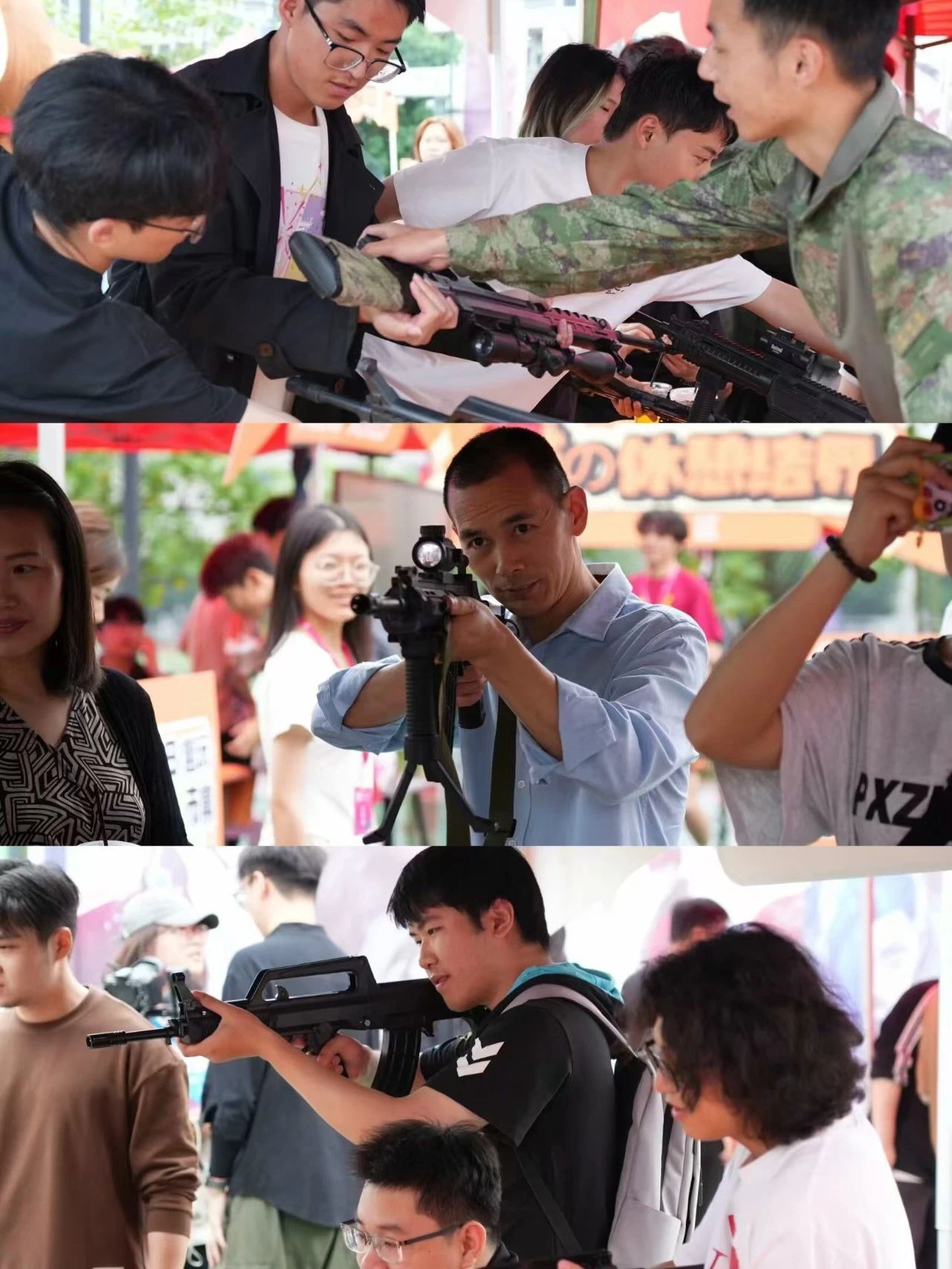 军迷社硬核体验站蔚然成风。模拟射击体验让参与者们兴奋不已,大家在感受军事文化独特魅力的同时,还能了解到军事元素在动漫创作中的运用。专业人员在一旁耐心讲解,从武器装备的特点到军事战术的设计,深入浅出地为大家科普军事知识,拓宽了同学们的知识面,也让大家对动漫中的军事题材有了更深刻的认识。