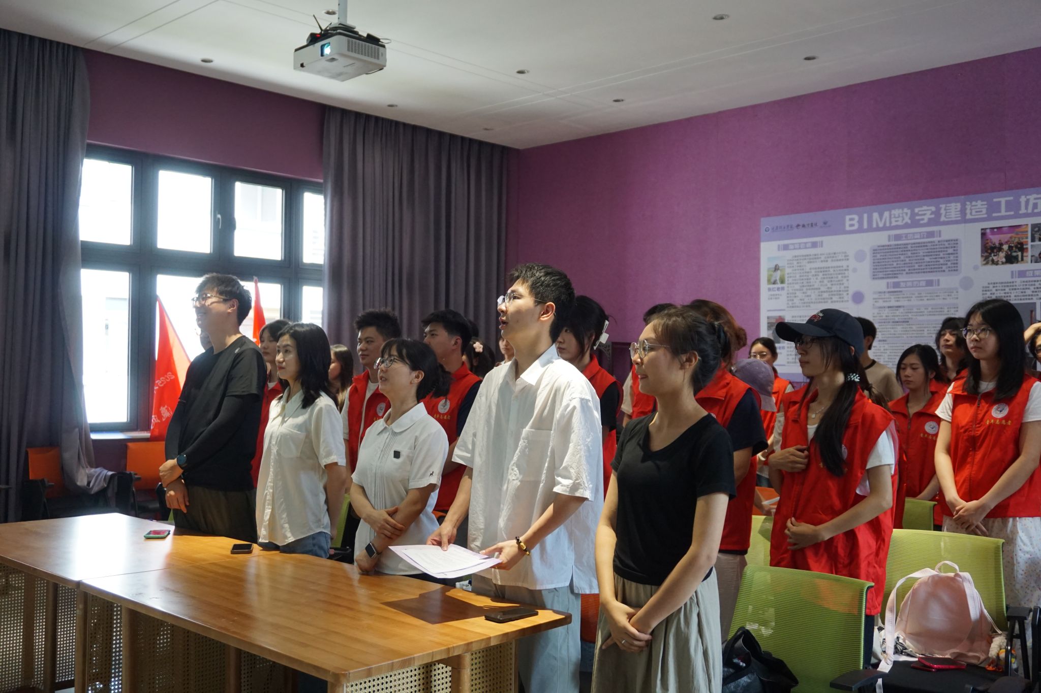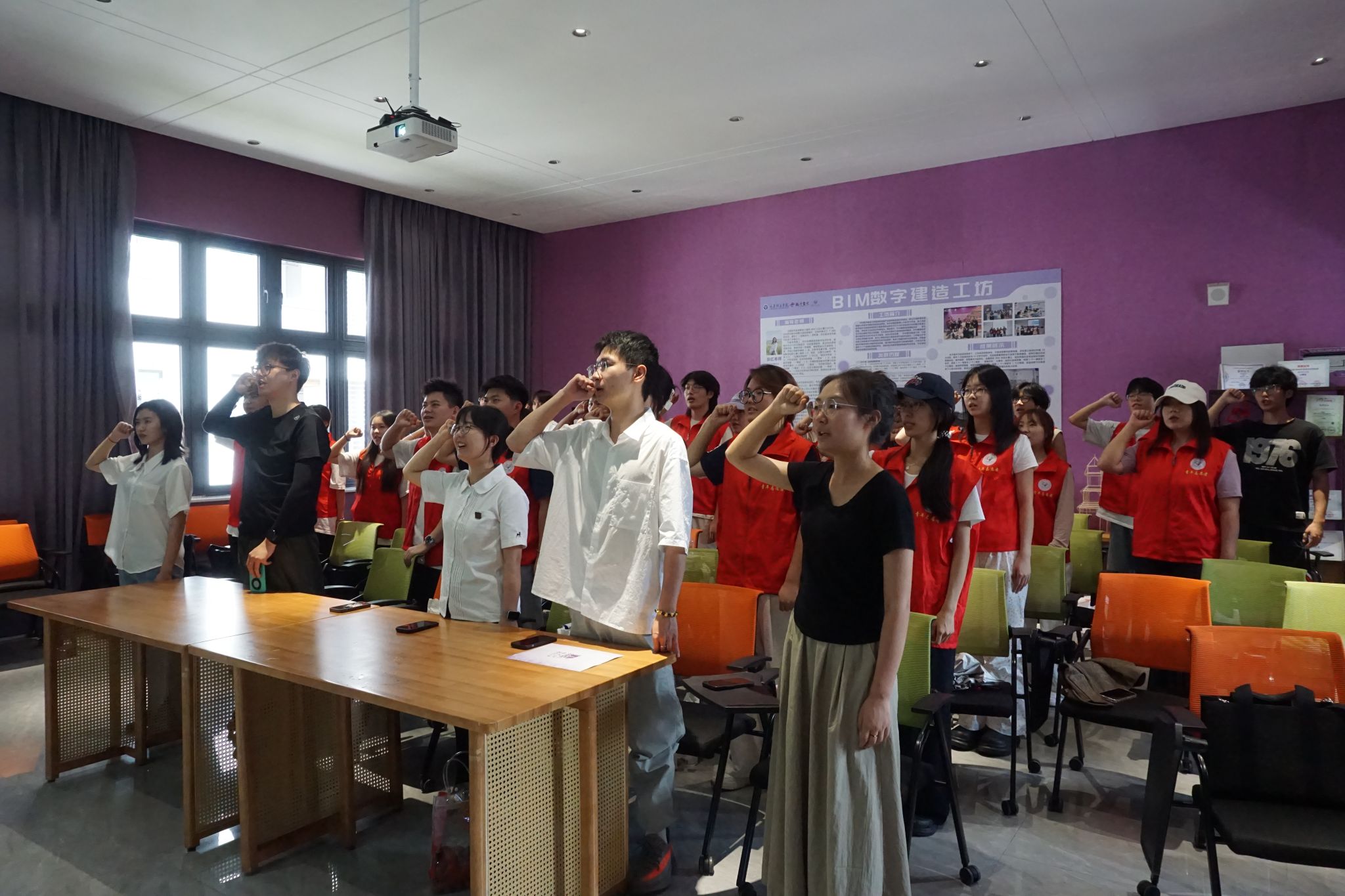 仪式在激昂的团歌声中拉开帷幕,全体成员齐声高唱,歌声嘹亮,唱出了青年学子积极向上的精神风貌和投身社会实践的坚定决心。同样激励着每一位青年学子在乡村广阔的舞台上大展身手,书写青春华章。