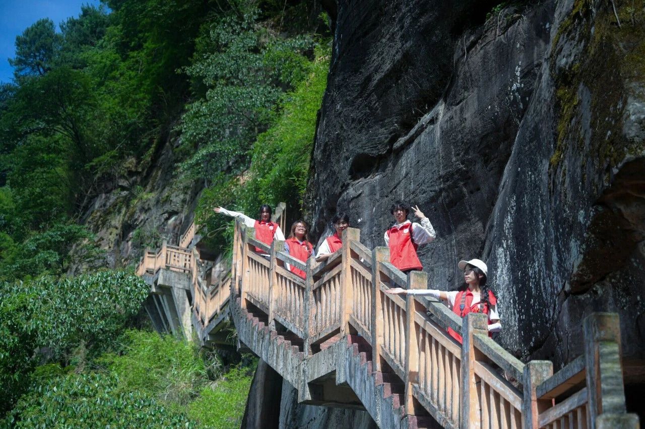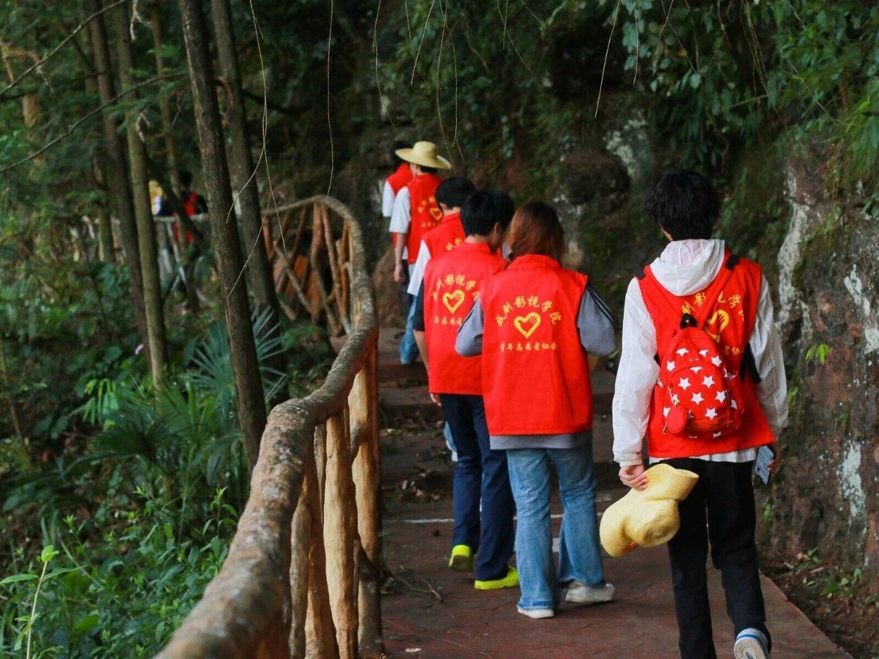 活动伊始,志愿者们来到老瀛山进行采风。老瀛山以独特的丹霞地貌、恐龙足迹化石群等地质而闻名。志愿者们徒步攀爬丹霞长廊,穿梭在沟壑和山峰之间,领略着大自然的鬼斧神工,近距离观察恐龙足迹化石,进一步了解红岩村的地质文化底蕴。