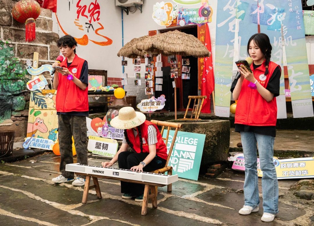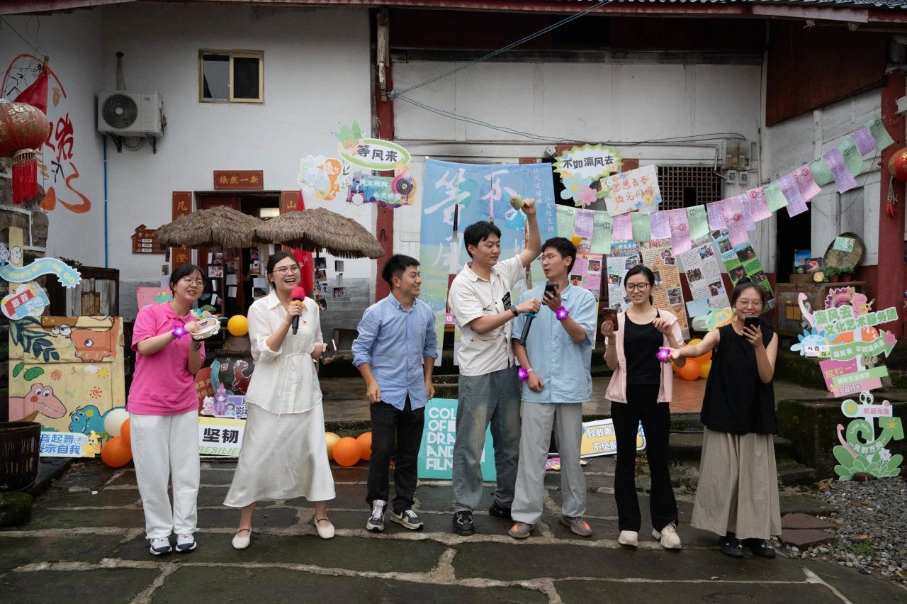 以专业赋能,用艺术点亮乡村生活,瀛风去文化艺术服务团于7月9日在红岩村“刘得住”小院举办了一场“最终,追风的人自己便成为了风”主题文艺汇演。本次活动邀请到红岩村党总支副书记刘绍军书记、戏剧影视学院学工办主任曾玉娇老师以及戏剧影视学院各位辅导员老师们。本次晚会由志愿者杨浩、胡锌主持。
