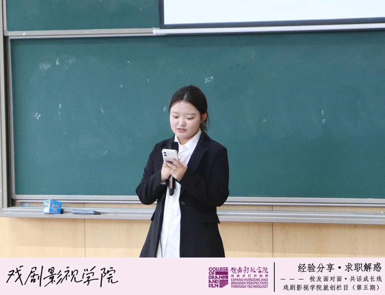 为帮助同学们明晰职业方向、积累求职经验,2025年9月16日,戏剧影视学院于玉棠书院·阶梯教室开展“校友面对面·共话成长线”就创活动。本次活动有幸邀请到重庆移通学院2017级工商管理专业校友盛晓娇与60位同学一起畅谈专业学习方法,实现自我的生涯规划。