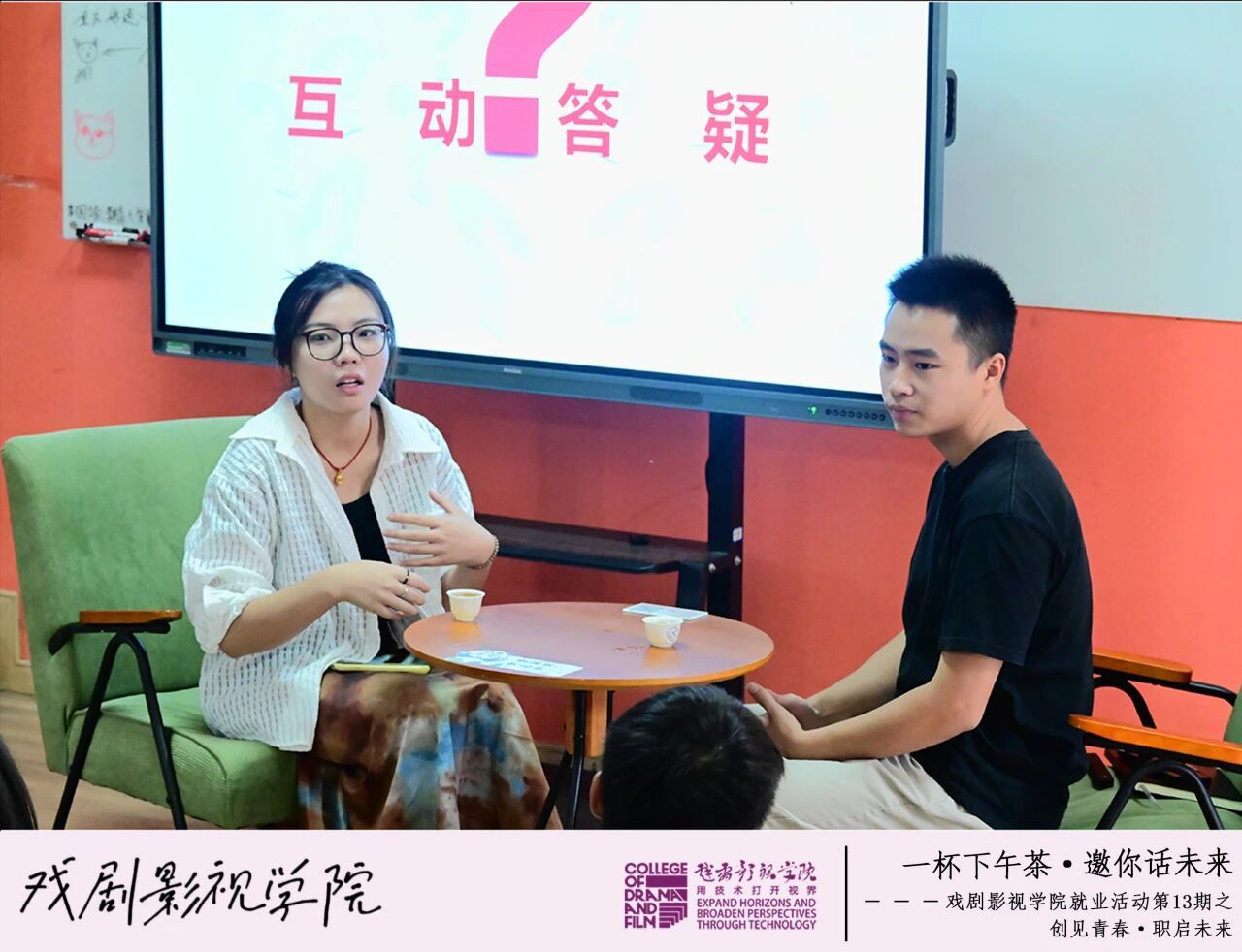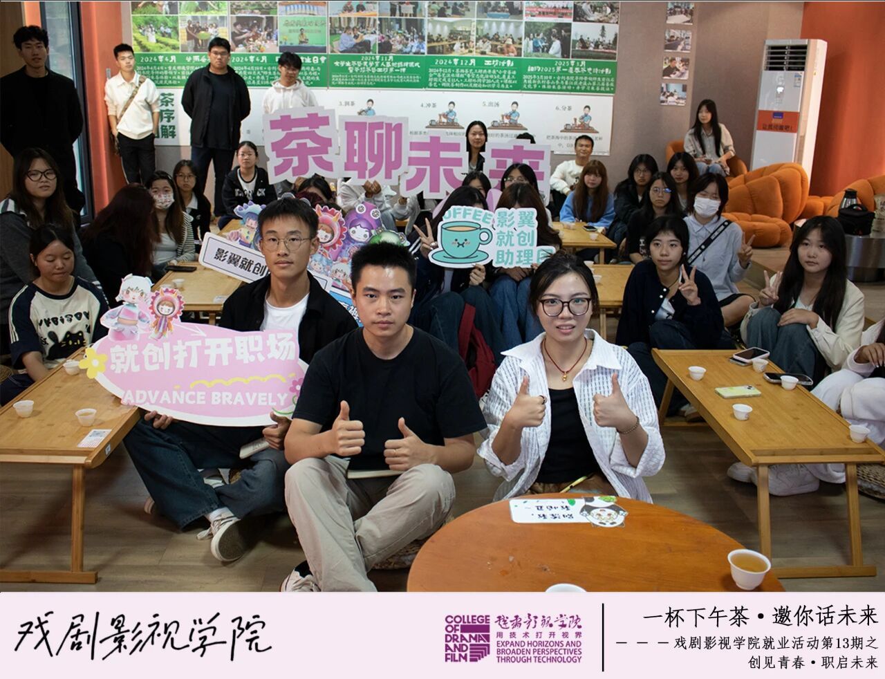 为帮助戏娃系统梳理创意思路、探索可行的市场路径,2025年10月15日,戏剧影视学院“‘一杯下午茶•邀你话未来’之创见青春·职启未来”就业活动,于古剑书院白虹·半间闲室举办。活动特邀重庆移通学院大健康管理学院辅导员周顺航老师主讲,戏剧影视学院就创助理团指导老师陈盈西参与现场交流。本次活动吸引了55位学生积极参与、聆听交流。