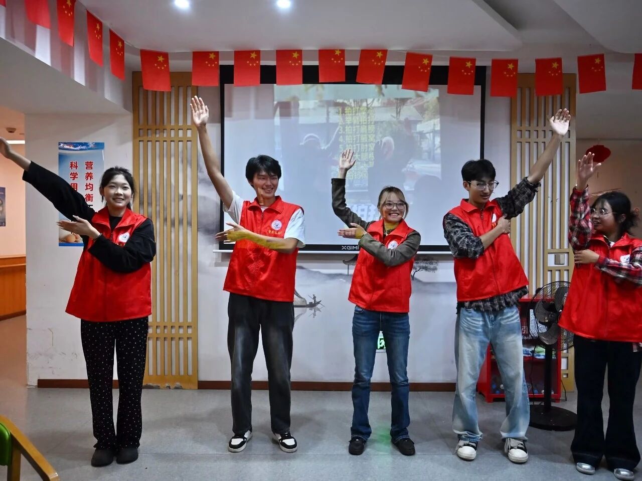 活动在轻快的节拍中拉开序幕。首先是“健康拍拍操”环节,志愿者带头示范,引导老人们起身活动,进行扩胸、转腰、拍手等简单动作。对行动不便的老人,志愿者则鼓励他们坐在座位上完成手部、肩部的简易活动。现场氛围温馨和谐,志愿者时刻关注老人状态,在保障安全的前提下,与老人们共同完成了首个环节。