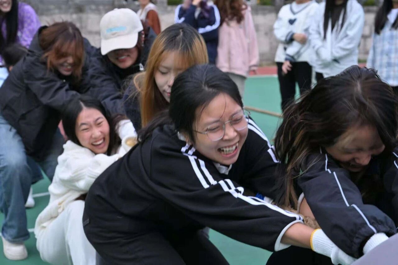 一场拔河下来,同学们脸上的笑容就没断过。平时做作业、改稿子总有点压力,今天喊出来、拼一把,感觉心里的“小乌云”全散了!每一个“戏娃”都在赛场上展现了不服输的韧劲——哪怕手心被绳子勒出红印,也没人喊停;哪怕力气快耗尽,听到队友的加油声就立刻“满血复活”。这股拼劲,比输赢更动人。