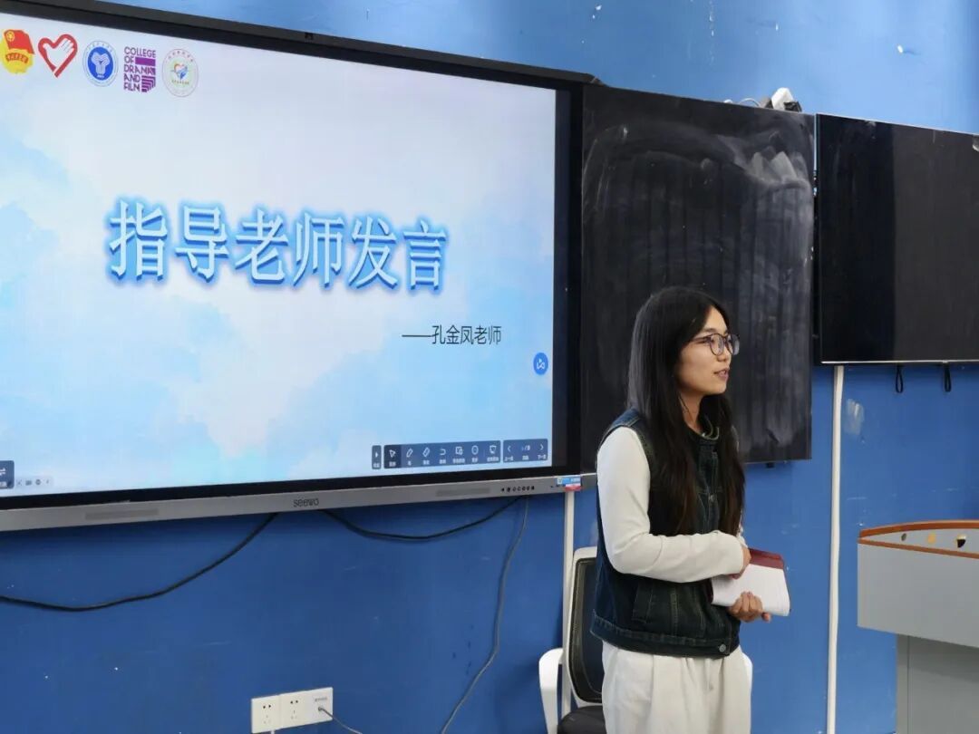 最后,青协指导老师孔金凤老师对会议进行总结。她充分肯定了各部门在十月工作中取得的成绩,同时指出当前存在的不足,如信息传递效率有待提升、部分活动参与度不高、执行细节需加强把控等。对此,她提出具体改进建议,并鼓励新干事勇于表达、积极参与,在志愿服务中明确自身定位,坚守初心。