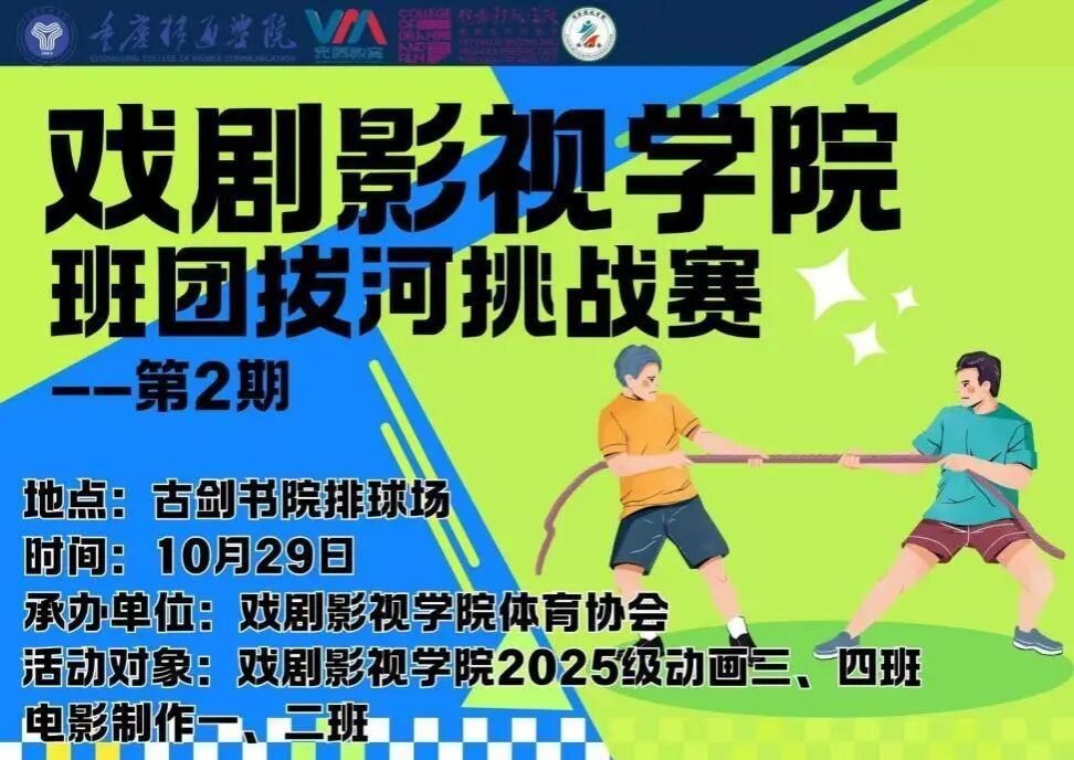 为贯彻“以体育人”的培养要求,戏剧影视学院体育协会组织策划每周三开展2025级班级拔河挑战赛,活动将“劲往一处使”的体育精神与团队合作、集体荣誉等核心素养相结合,旨在增强基层班团学生集体凝聚力,培养坚韧意志与健康运动习惯。