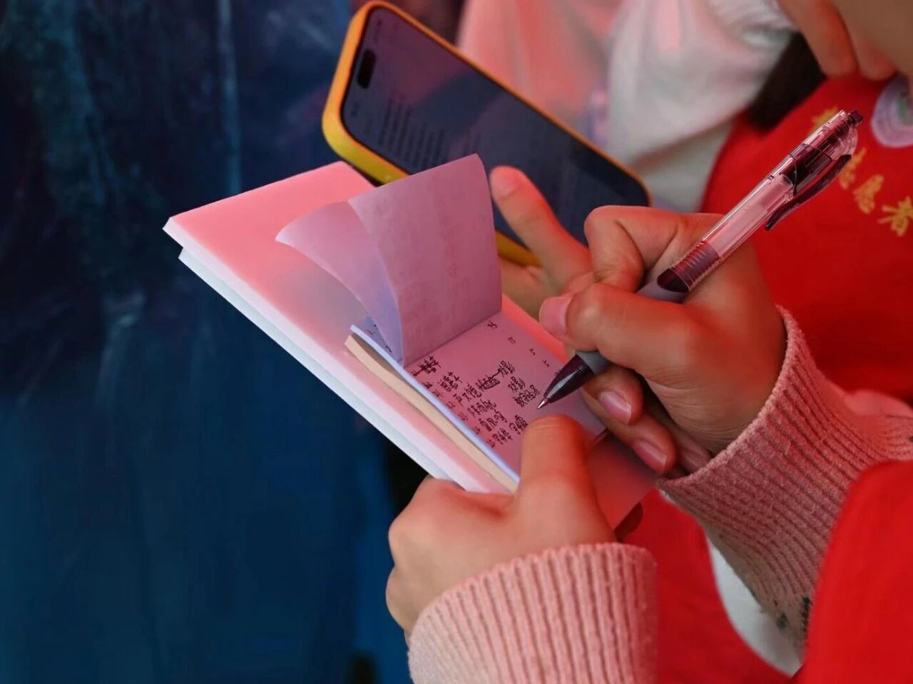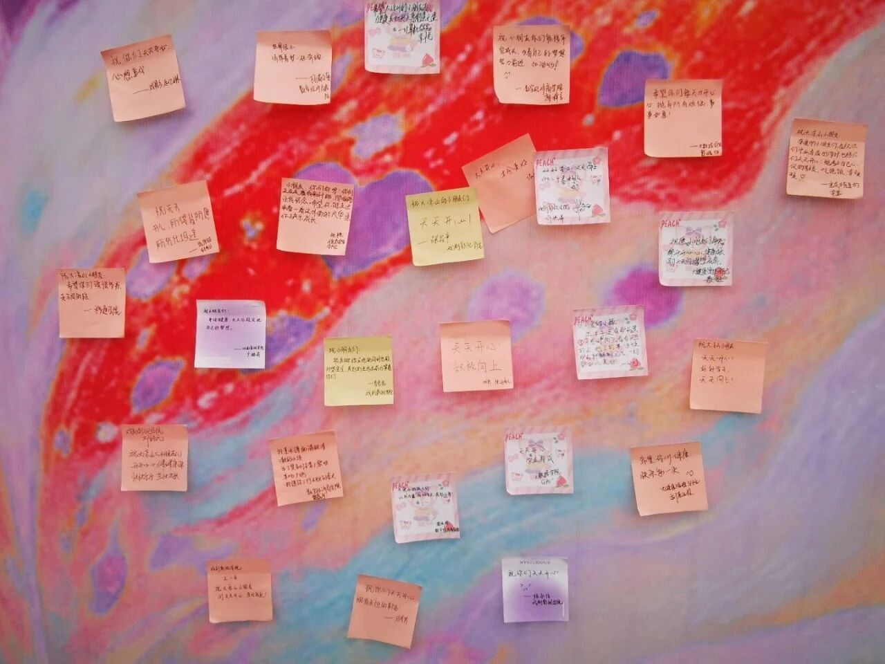 在参与创作的过程中,每位同学还受邀写下对四川大凉山孩子们的祝福。小小的留言卡,成为传递真情的温暖载体。“愿你们眼中有光,心怀梦想”“每颗拼豆都代表一份心意,愿能温暖你们的求学路”......这些话语质朴而真诚,或鼓劲加油,或传递关怀,或寄予期许,一笔一划间满是纯粹的善意。最终,这些祝福卡片将与义卖所得一同送往大凉山,为孩子们带去秋日里最真挚的温暖问候。