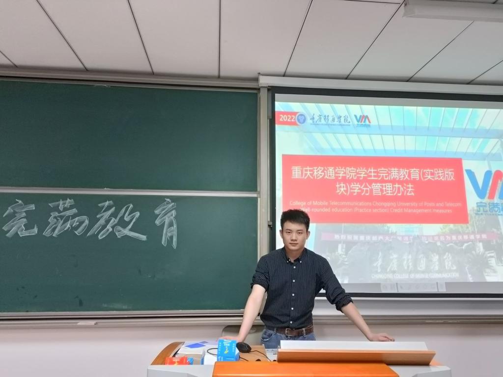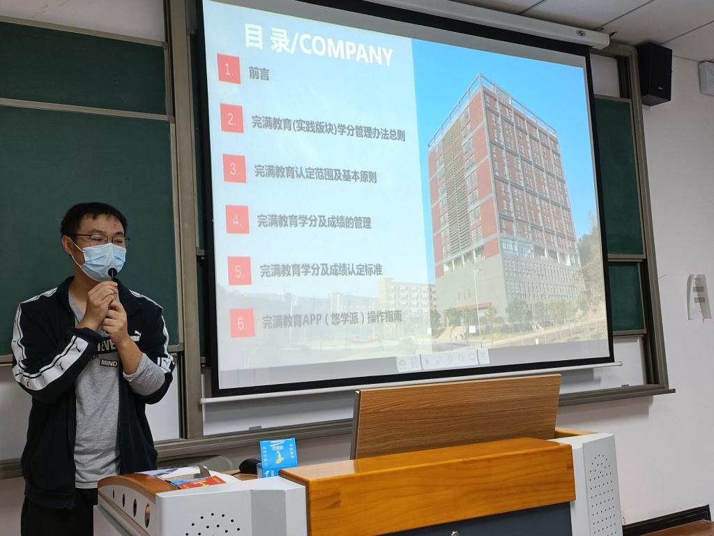 辅导员张焕忠老师和班导师尹云晖同学为同学们进行了完满教育的初步介绍,同学们由此对学校的教育政策有了进一步的了解。本校特色的“四位一体双院制”意在培养德育智一流、全方位发展的高质量人才,同时“完满教育”积极响应国家、社会及同学们的期盼,努力为同学们创造生活的多元需求。通过这次对完满教育的初步讲解,同学们的思维得到了启发、拓展了视野,帮助同学们更加清楚的认识自己,挖掘自身的兴趣爱好。
