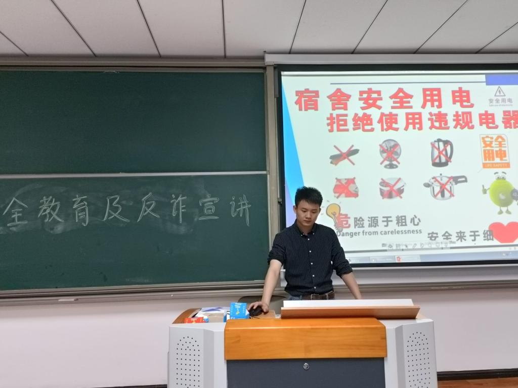安全隐患问题是每年防范中的重头戏,要把安全防范意识牢记心中,生命只有一次。借此年级会,辅导员张焕忠老师耐心为同学们讲解宿舍安全用电措施和日常用电规范,在宿舍禁止使用违禁用品,包括电热水壶、小煮锅等大功率电器,充分保证在校期间的用电安全。讲解结束后,同学们表示受益匪浅,积极向辅导员承诺会自觉遵守用电管理制度。这不仅加强了同学们的防范意识,同时也进一步加深了同学间的联系。