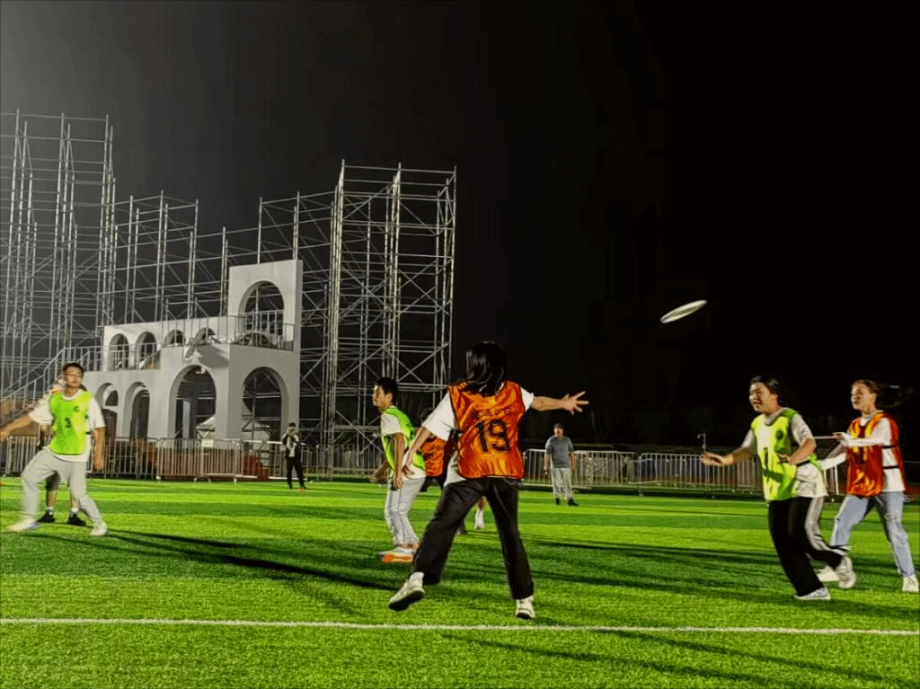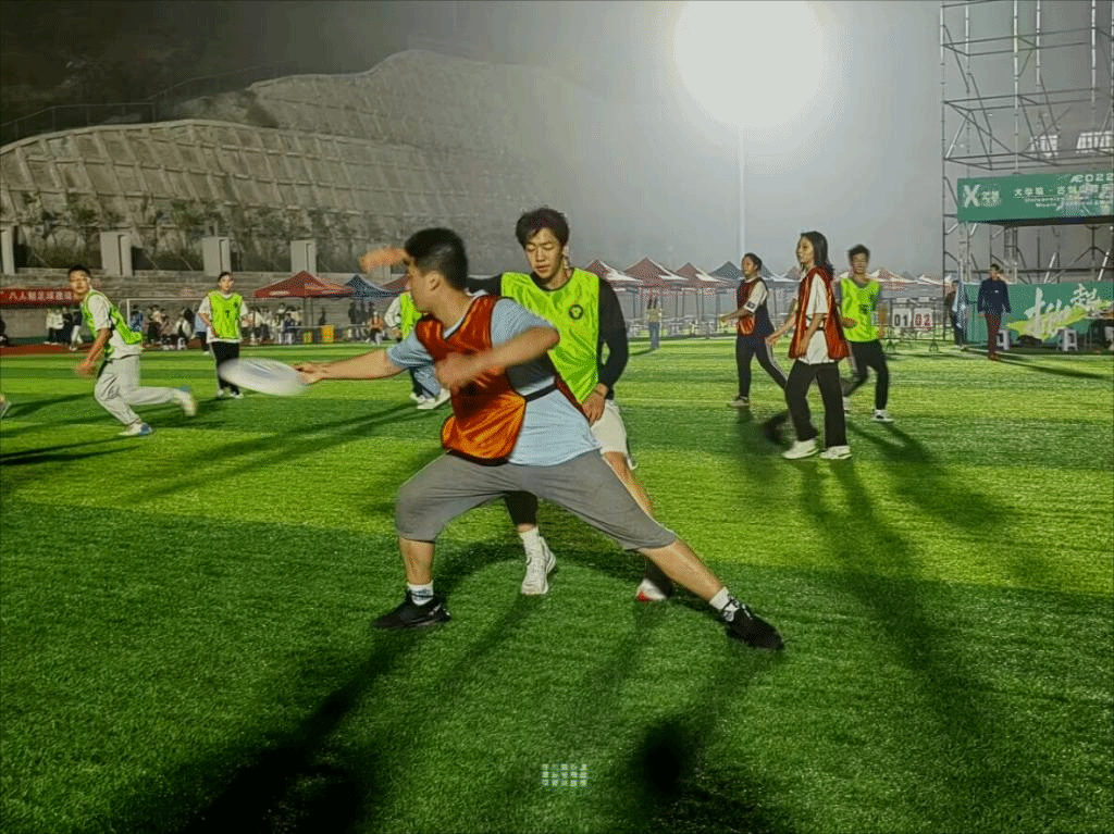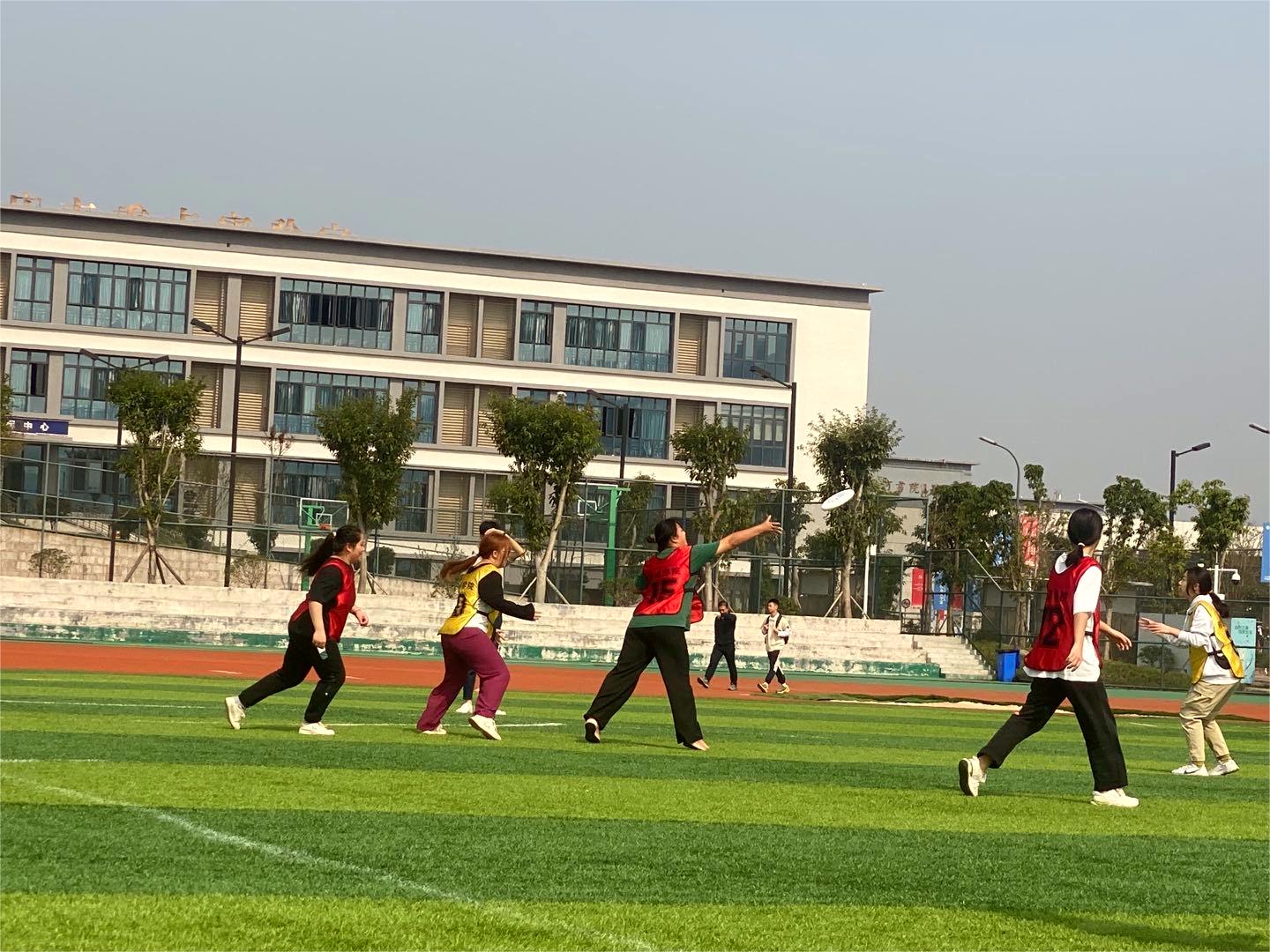 11月,玉竭凝霜,百花摇落,色损香消,惟有菊花含苞吐蕊,菲然独秀,用瑰丽迷人的色彩,酿出一行行诗语,凝成霜的精魂,露的花魂,在风中翩翩起舞。在这个诗意的季节里校园把自己的绚丽、缤纷、洒脱展示得淋漓尽致。冬季即将到来,为了增强我院学生身体素质,进一步推动我院体育活动发展,提高大学生课余生活质量,展现出新时代大学生的精神面貌和凝聚力。在此时节,由我院辅导员老师张焕忠、体育协会干部带领大健康管理学院运动健儿登上“飞盘赛”赛场。他们齐心协力、无所畏惧,彰显健管学子的风采。