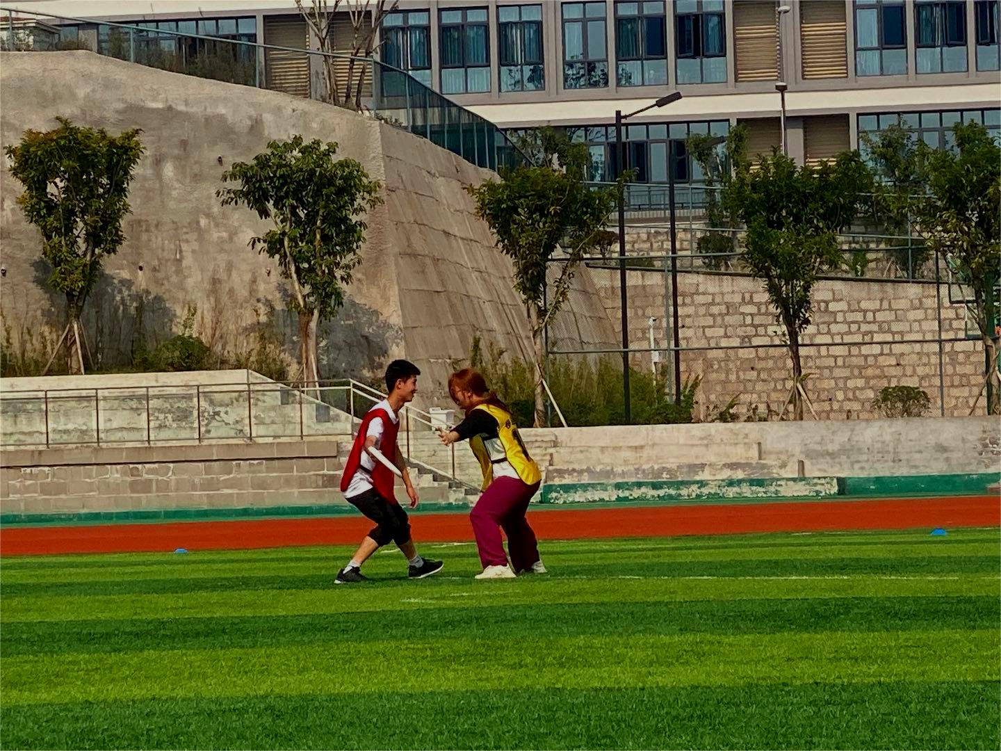 奔跑之时释放激情,面对困难从未退缩。比赛一开始,队员们没有急于进攻,而是选择防守,观察对手攻势。看!一个失误,对手落盘,转为我方进攻,健儿们稳扎稳打,稳定发盘,精准接盘,很快便达阵得分。第一场取得5:1的成绩。第二场高手云集,不过大家团结一心,逐个盯防,最终8:0大破对手。第三场对战戏剧学院,由于对方不擅长,对此我们充分做到了“友谊第一,比赛第二”,场上是对手,场下是朋友。一边比赛,一边指导他们的站位。以小组第一的成绩打入半决赛,最终成功进入决赛。最后一场,我方对战的是实力超强的大数据学院队伍,队员们凝心聚力,奋力拼搏,在绿茵场上擦出亮眼的火花。最终比赛圆满结束,虽无缘冠军,但队员们赛出了水平,赛出了风采,取得了第二名的好成绩!