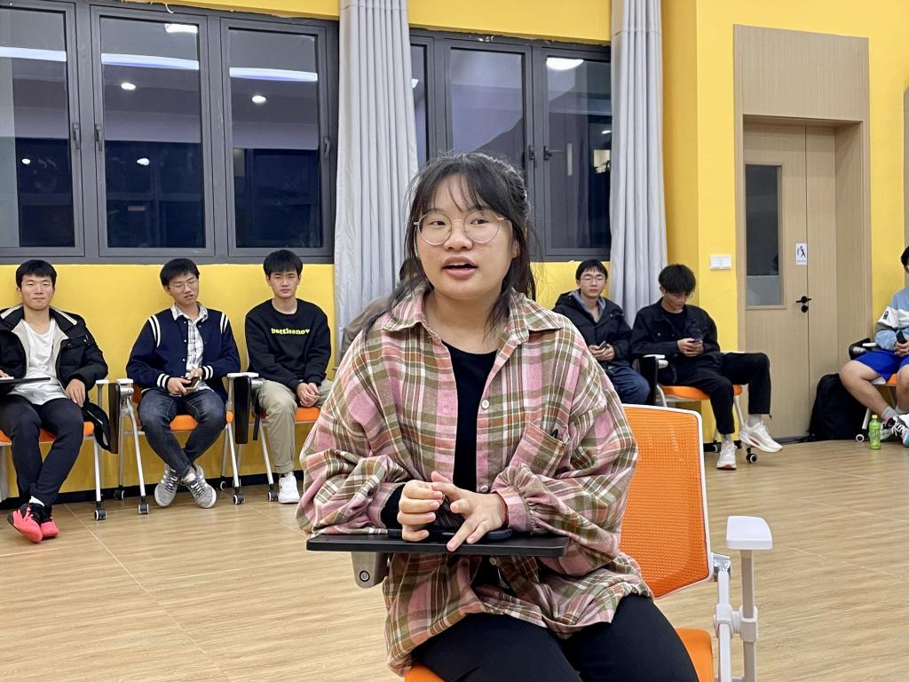 心理团辅活动将近尾声,我们邀请到了来自淬炼·国际商学院工商管理类2021级傅莉学姐来到现场向我们分享她在大一学年的成长经历。傅莉学姐为大家解答了综测、奖学金、期末复习策略等问题,同时指出班委干部们要恪尽职守,认真学习,做好榜样精神的指引,积极打造班级建设,增进同学们之间的凝聚力。