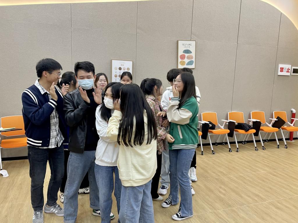 最后辅导员张焕忠老师宣布本次心理团辅活动圆满结束。我们以环环相扣的圆形表达了对这个班委大集体的认同以及对成员间友谊的珍重。相信同学们都能学会如何调节情绪,保持心理健康,以自信平和、积极勇敢的心态面对困境。愿你们怀着乐观、阳光的心态,在人生道路上愈走愈坚强,排除万难,向阳而生!