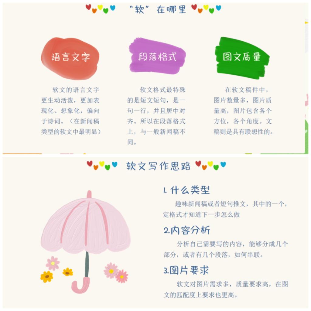 通过我之前对稿件撰写的初步认识再加上班导师王瑜学姐的精彩的讲解,使我对新闻稿与软文写作有了更为全面的认识。二者对我来说犹如左手和右手,二者兼顾,相得益彰。正如王瑜学姐所说“生活之美,在于发现”要写好新闻稿和软文,闭门造车是不行的,我们要用敏锐的双眼去观察周围的事物,留心生活中的点滴,这样写出来的新闻稿、软文才会有温度、有特色。
