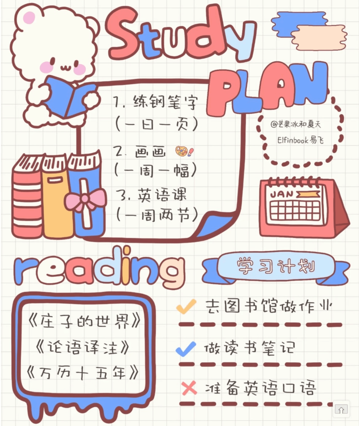 用心营造开学氛围,给自己一个有仪式感的开学准备,比如购置新的文具,为自己拟定座右铭,确认自己的学习目标。